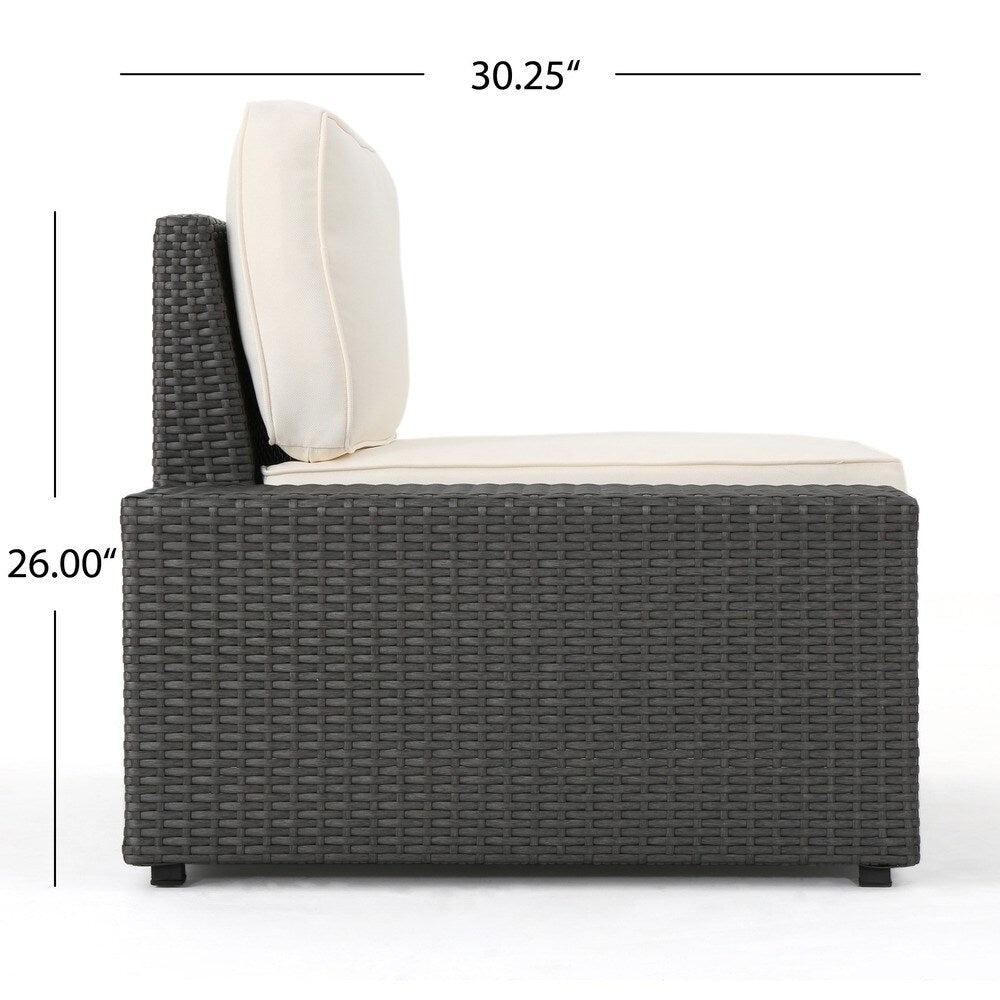 Porta la festa all'aperto con il design ampio ed elegante di questo set di divani componibili in vimini. Il robusto vimini è avvolto attorno a una struttura in ferro e completato da cuscini impermeabili che durano anni. Il tuo patio accoglierà sicuramente l'aspetto sereno e sofisticato di questo grazioso set.