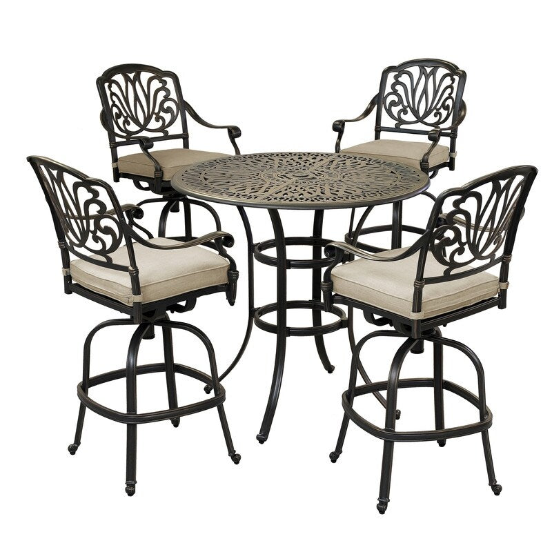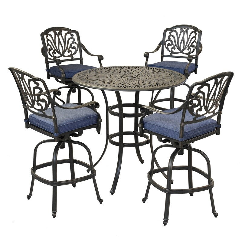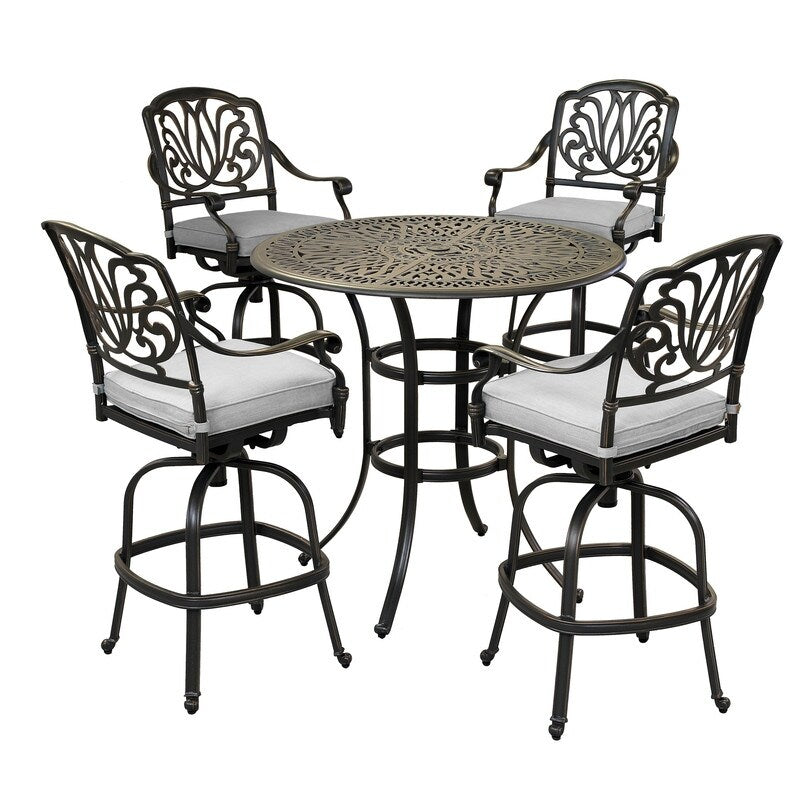 Set da bar in alluminio Saratoga da 5 pezzi con cuscini, tavolo da bar rotondo da 42