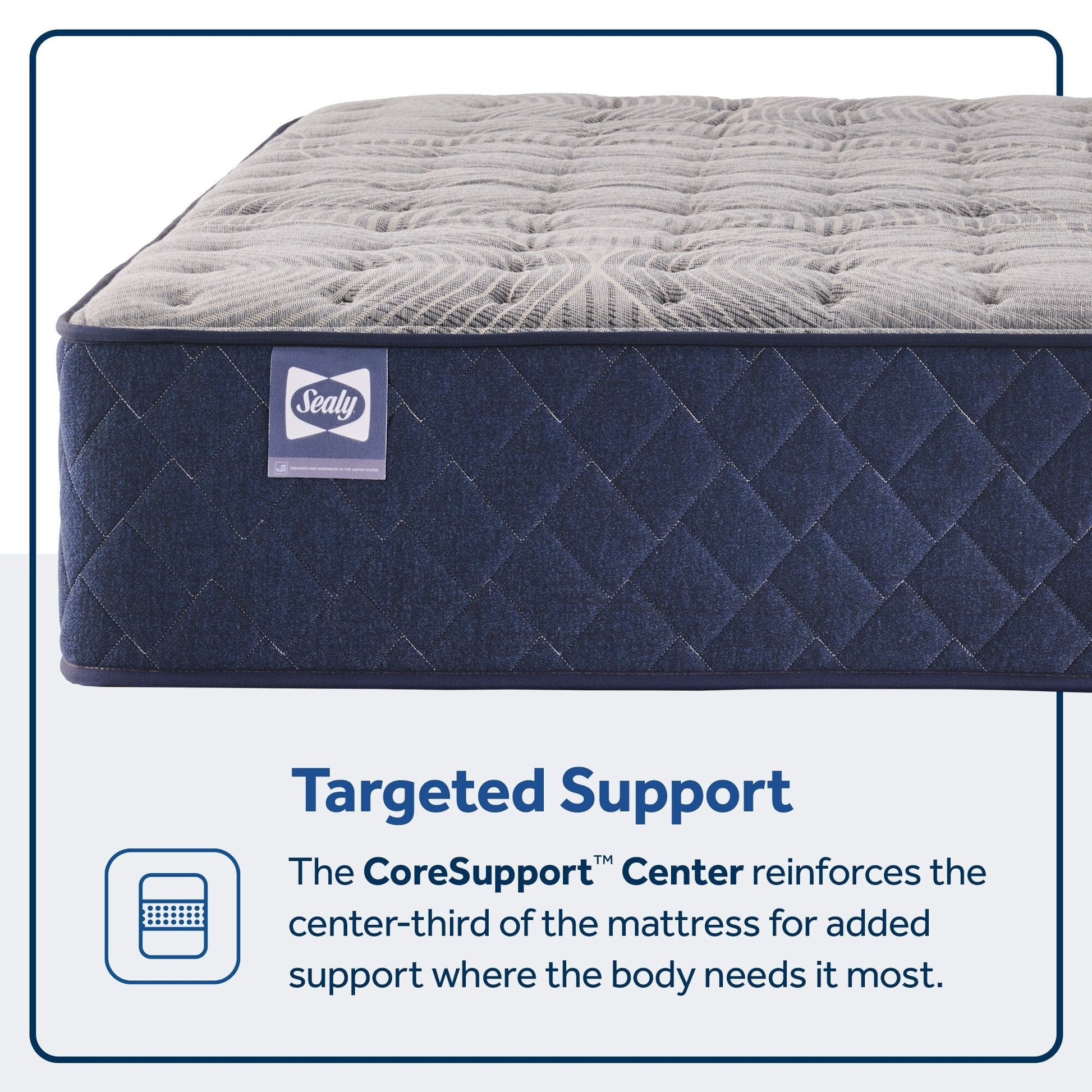 • SealySupport™ Gel Foam è una schiuma di gel tradizionale che contribuisce al supporto fondamentale di molti materassi Sealy™.