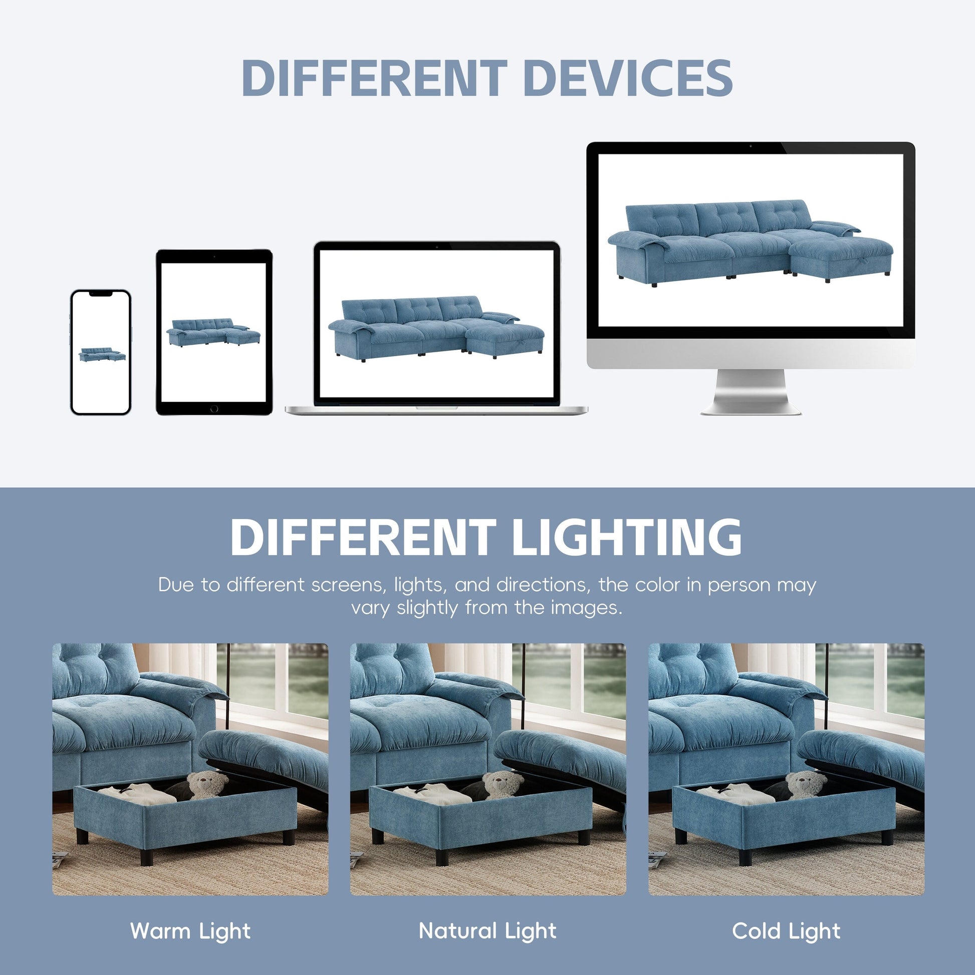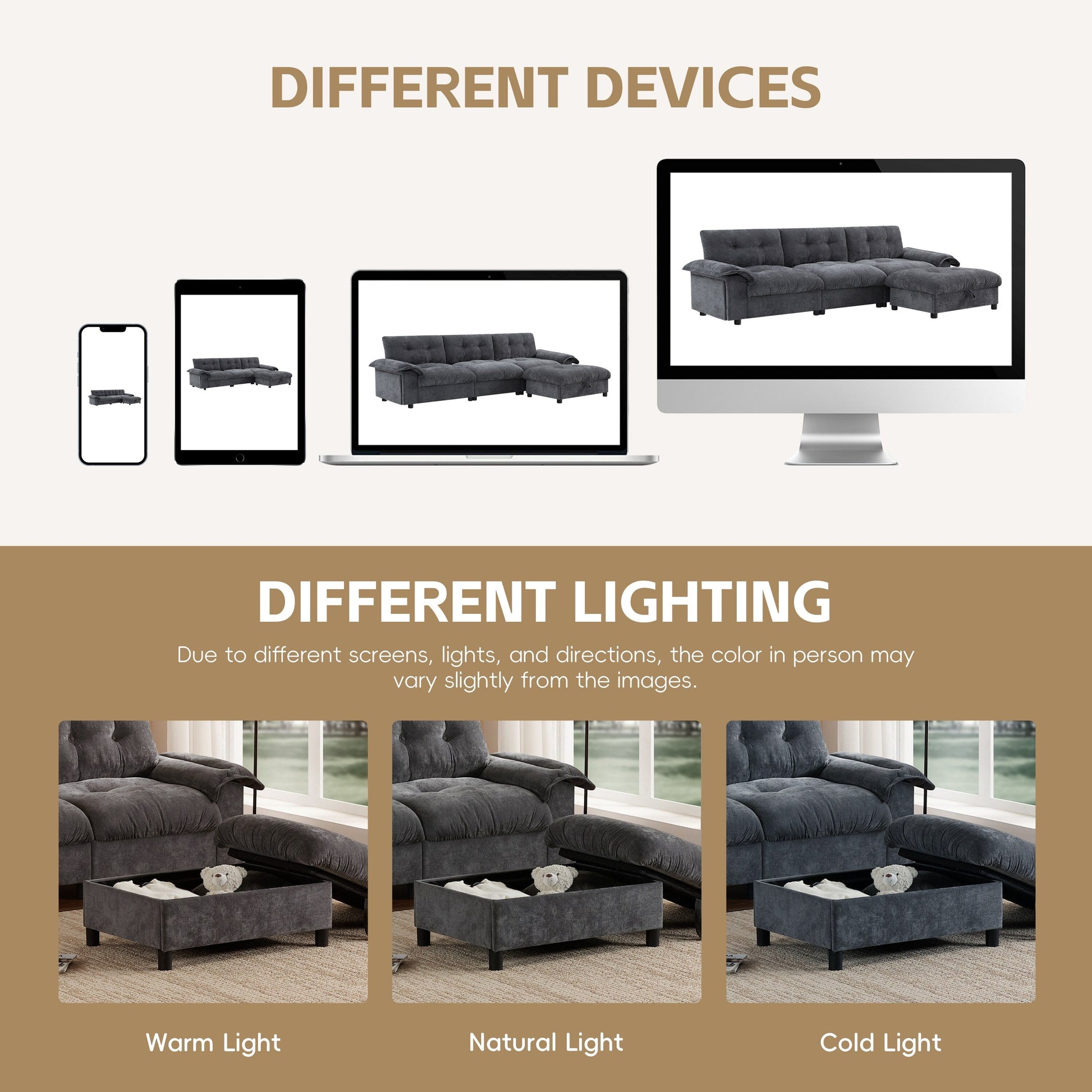 Divano componibile a L con bracciolo multifunzionale, doppia...