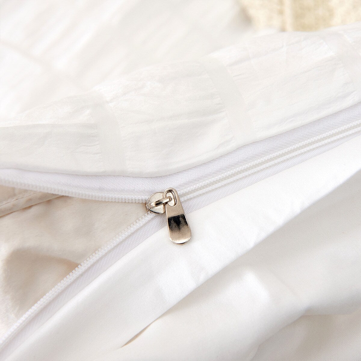 • La cerniera in metallo e i lacci angolari facilitano il cambio del copripiumino