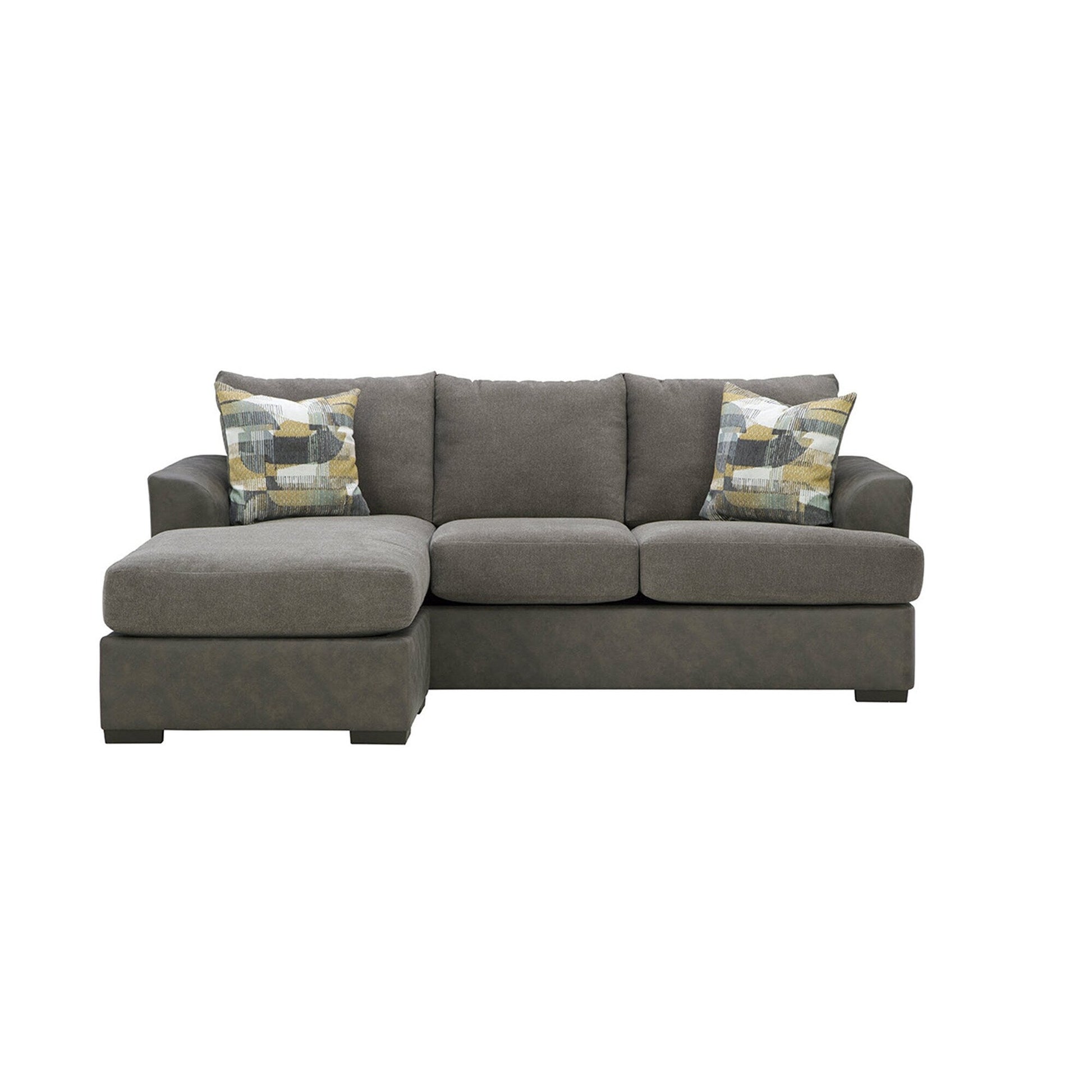 Un divano chaise longue versatile. La chaise longue può essere spostata a destra o a sinistra. I cuscini della seduta sono bifacciali e il pouf non è fissato. Il corpo esterno del divano è in ecopelle vegana di poliestere. I cuscini sono in resistente ciniglia intrecciata. Ci sono due cuscini decorativi nei toni caldi del grigio, oro e verde su uno sfondo bianco delicato. Un bellissimo motivo astratto che aggiunge un tocco di fascino visivo. Tutti i tessuti sono in 100% poliestere, resistente e lavabile. I cuscini dello schienale fissati rimangono in posizione. Questo è uno stile di transizione che può essere utilizzato in qualsiasi casa. Seduta che si adatta a qualsiasi dimensione di planimetria. Un ottimo rapporto qualità-prezzo e un look accattivante. Prodotto con orgoglio negli Stati Uniti!