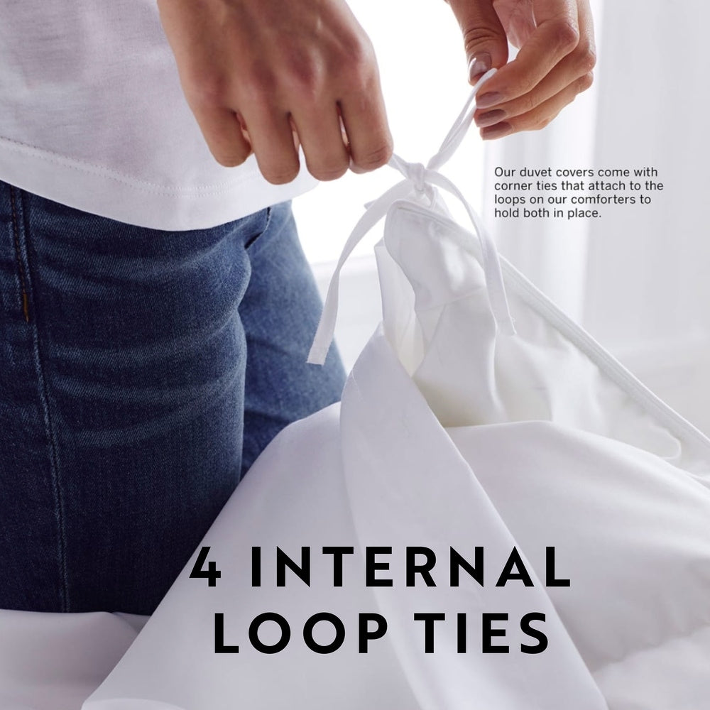 • Chiusura con cerniera e lacci per gli angoli del piumone