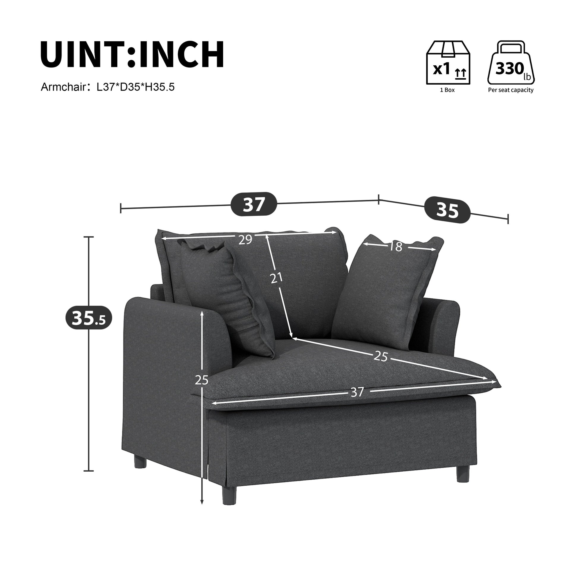 Modulo divano singolo per divano componibile, poltrona in ciniglia con seduta larga e cuscini, divano singolo imbottito