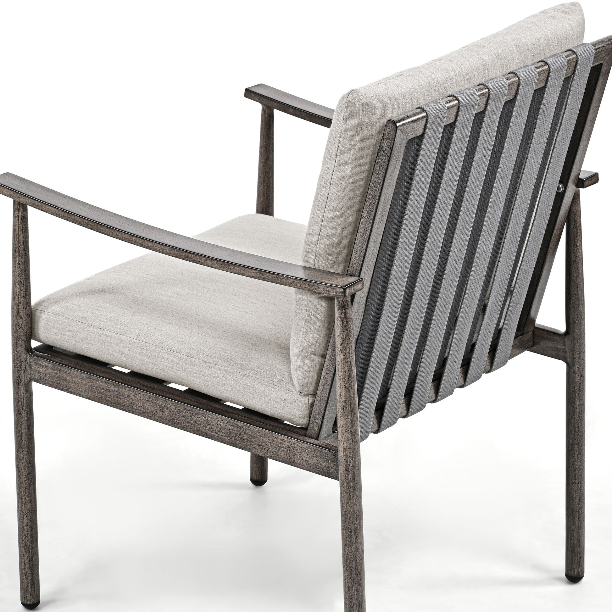 Set da pranzo per patio in alluminio SleekLine da 7 pezzi con schienale in fettuccia e cuscini rimovibili