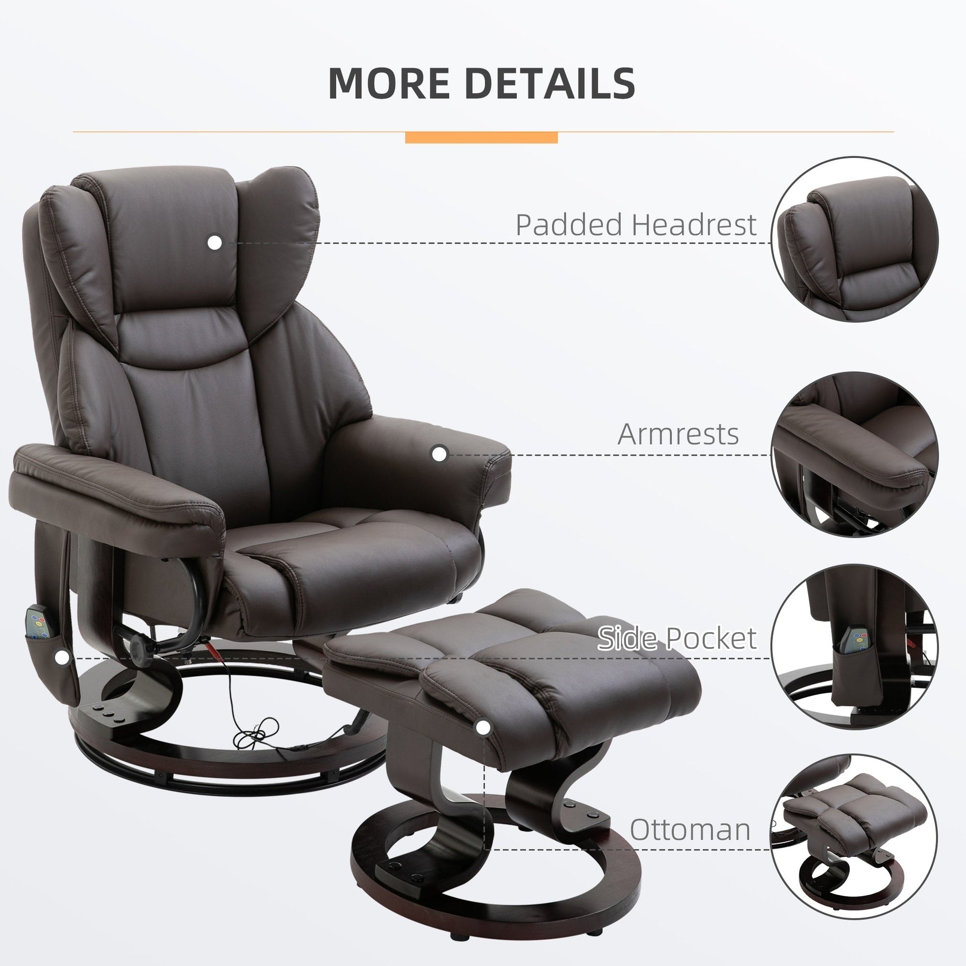 Piccola poltrona reclinabile in similpelle con poggiapiedi, massaggio...