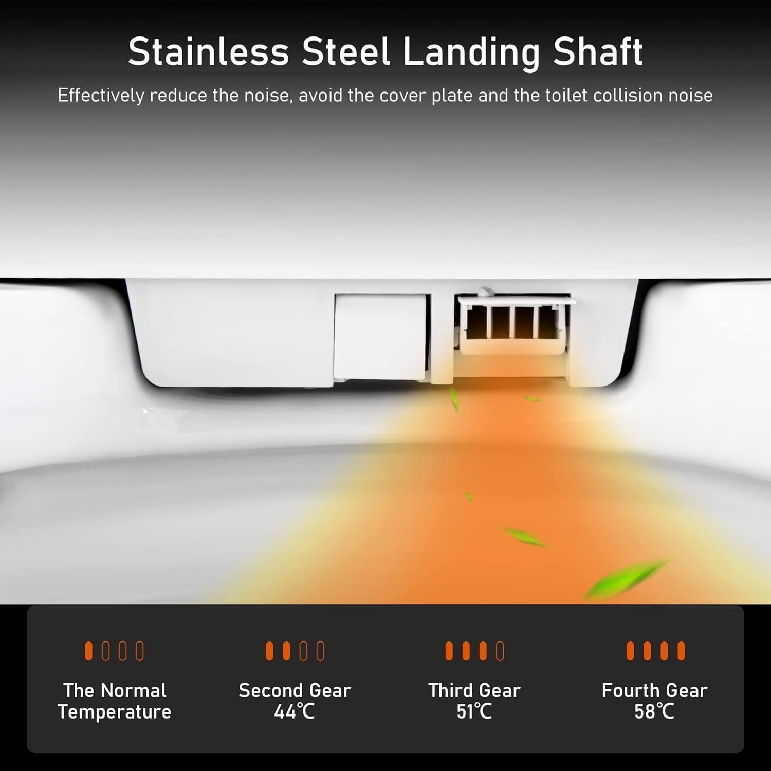 • WC intelligente Morden: dotato di apertura e chiusura automatica del coperchio, apertura del sedile attivata dal sensore del piede, sedile del WC riscaldato, scarico automatico, scarico con spegnimento automatico, impostazioni di temperatura regolabili, ugello autopulente in acciaio inossidabile, luce notturna soffusa, sistema di purificazione dell'aria, acqua riscaldata istantaneamente e asciugatore ad aria calda. Goditi una maggiore praticità con un intuitivo schermo LED e un telecomando.