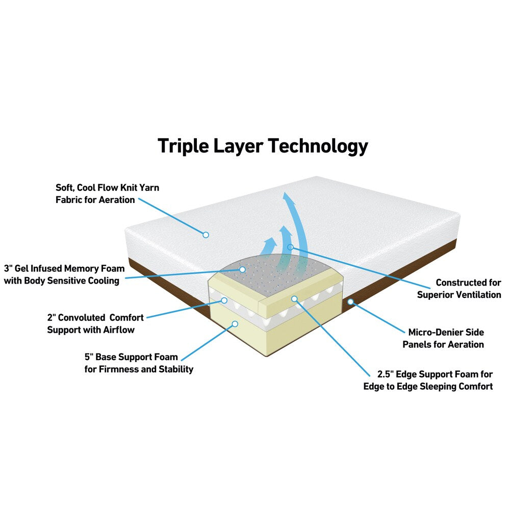 • Materiali: memory foam infuso di gel da 3 pollici, schiuma convoluta da 2 pollici, schiuma normale da 5 pollici e 2 libbre, rivestimento Polar 2