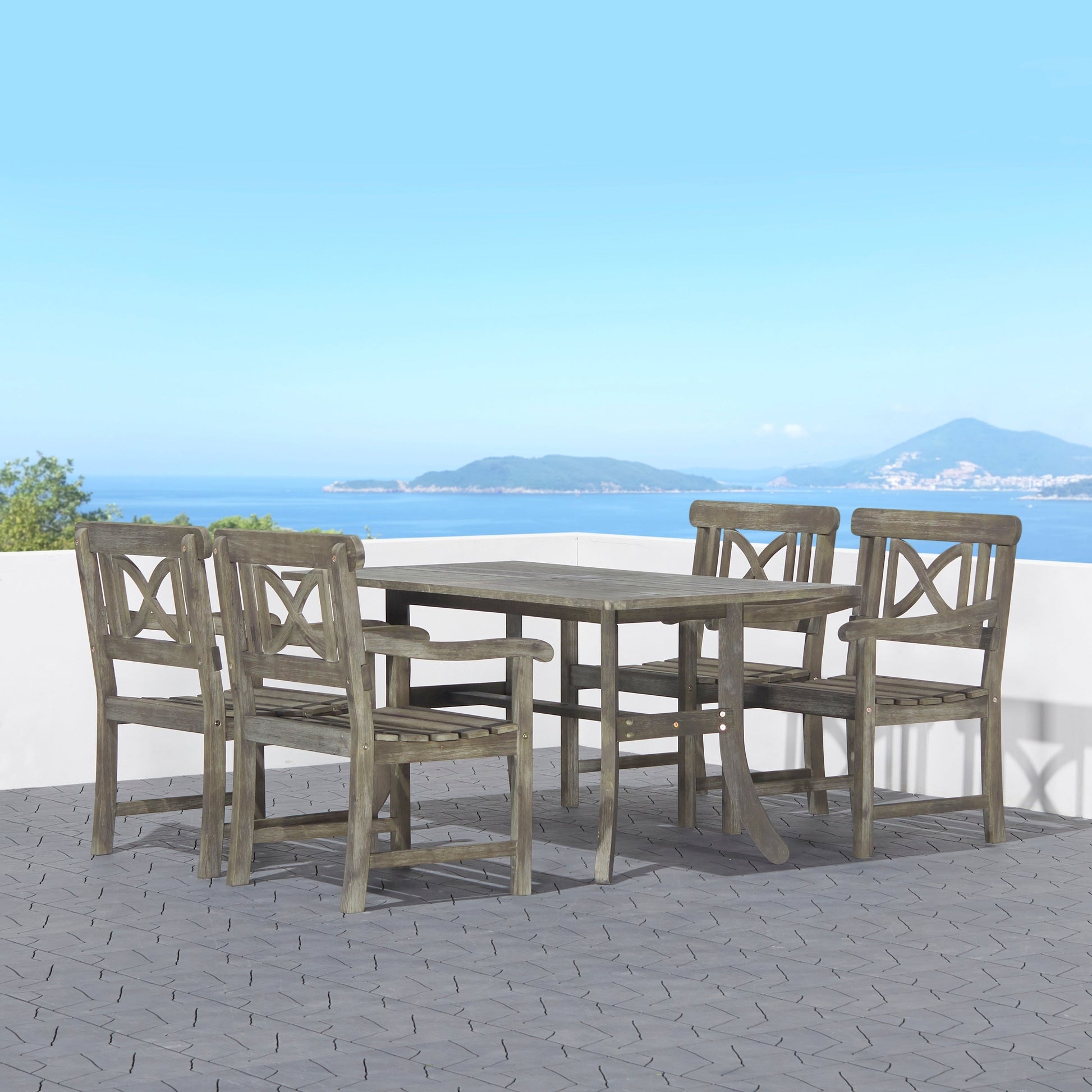 Un modo originale per mettere in mostra il tuo gusto personale è con questo set da pranzo da giardino in legno massello grigio lavato da 5 pezzi Stefanos!