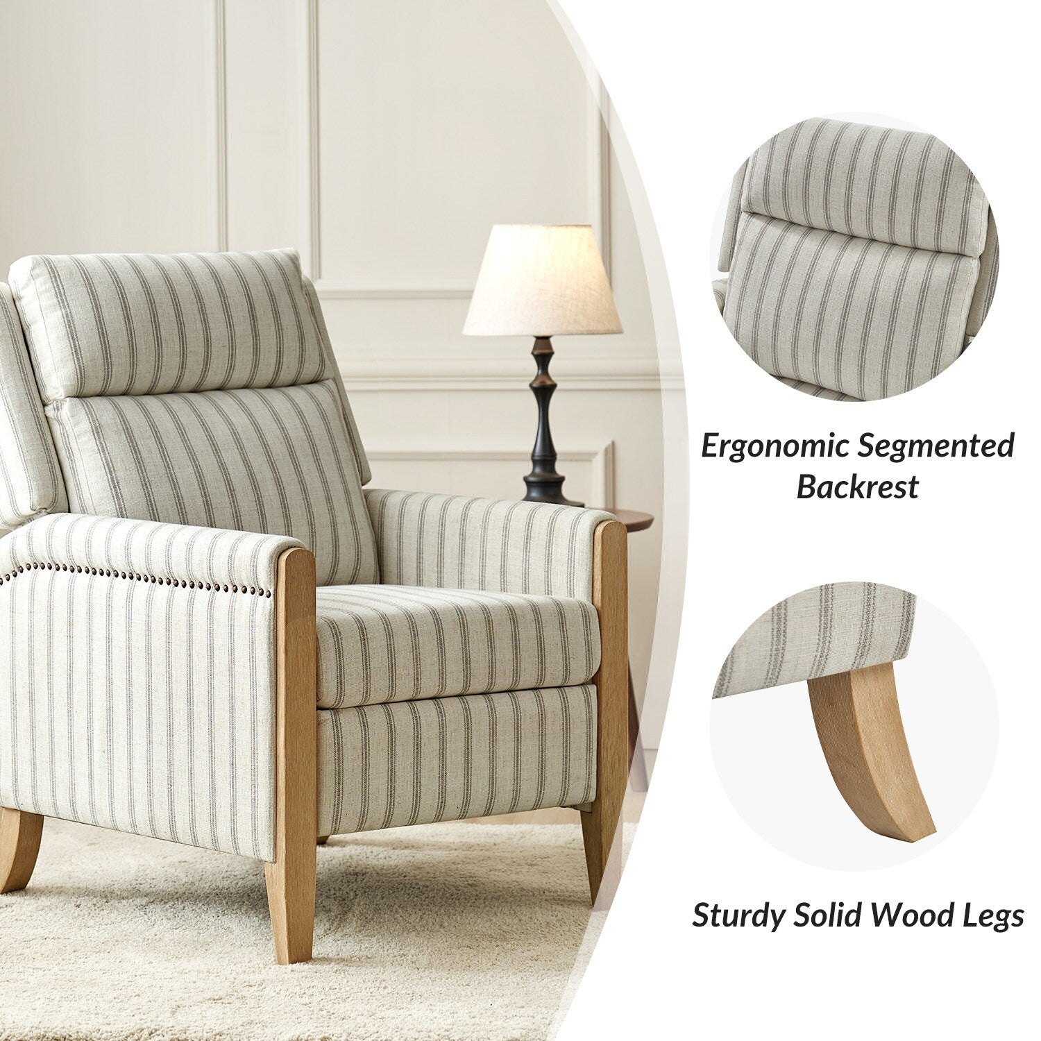 Poltrona reclinabile manuale Suares Transitional Nailhead con gambe...