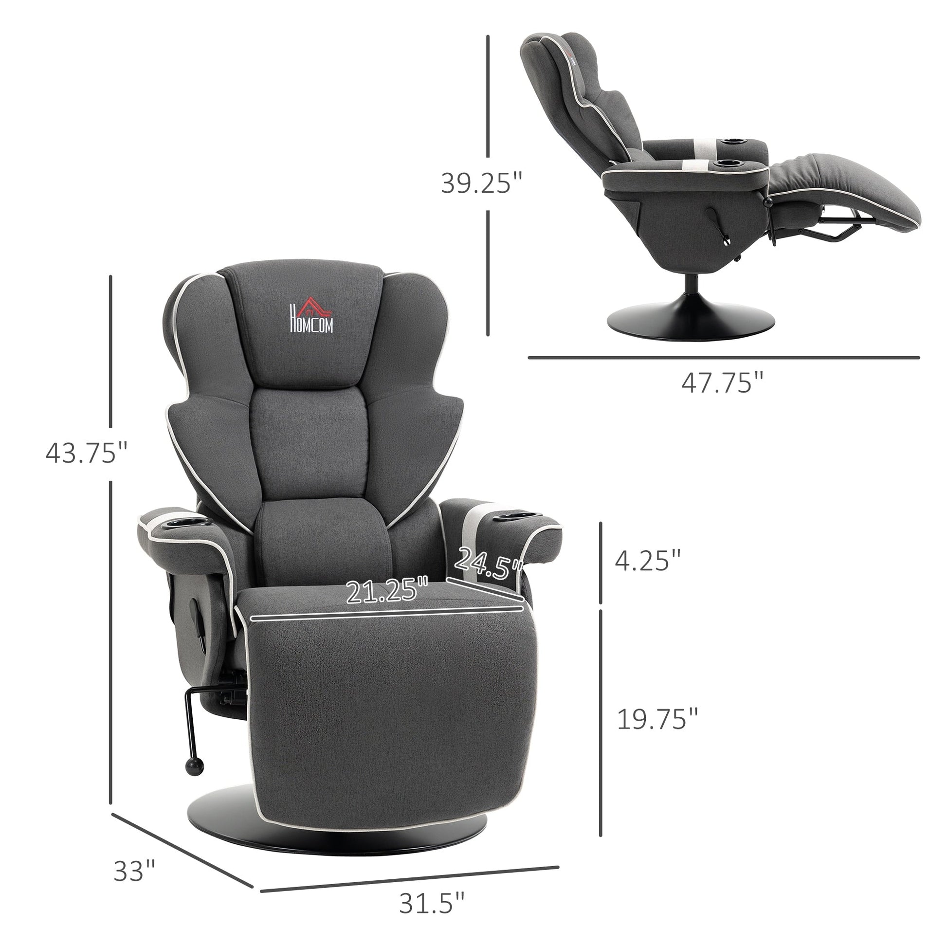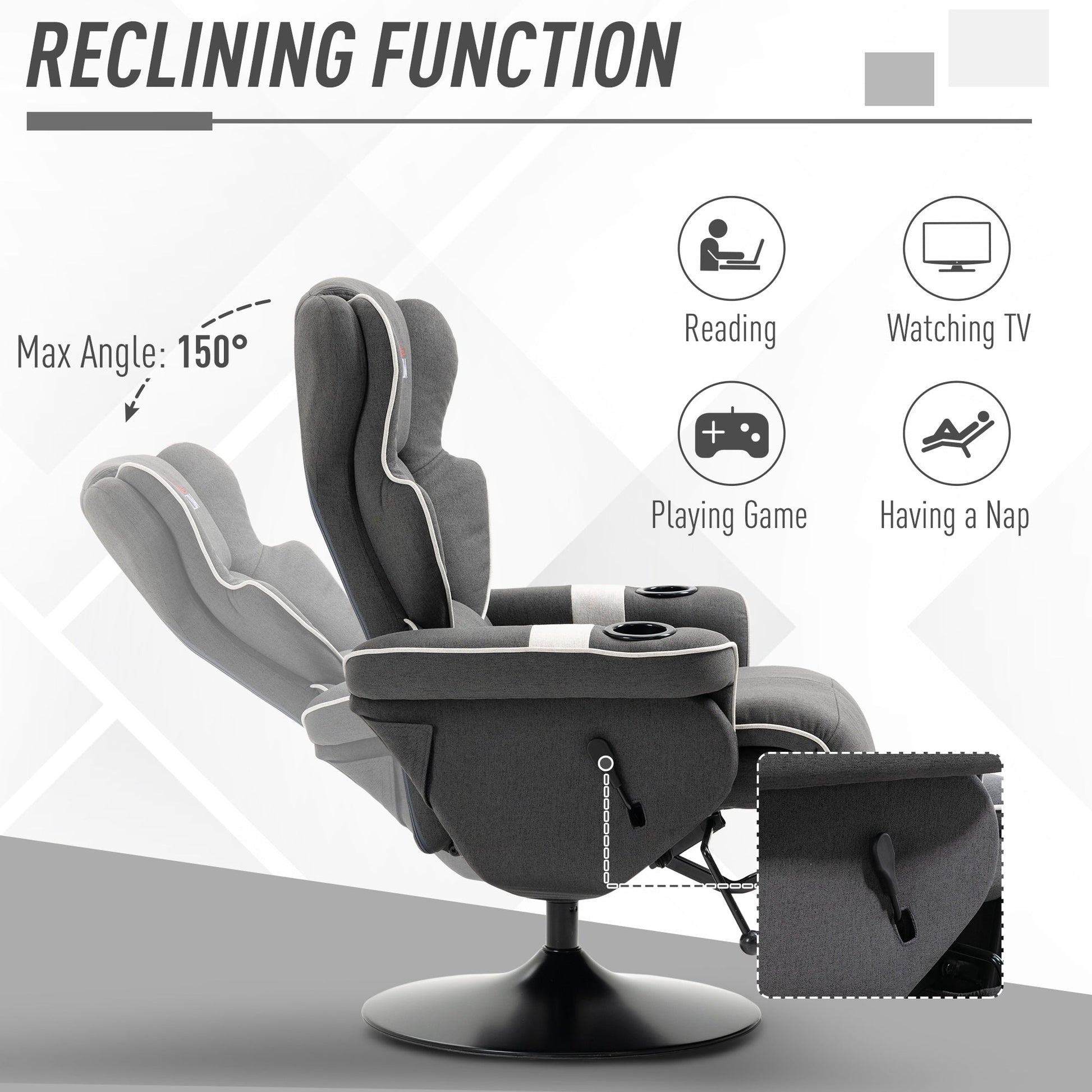 Poltrona reclinabile girevole con rivestimento in lino, poltrona...