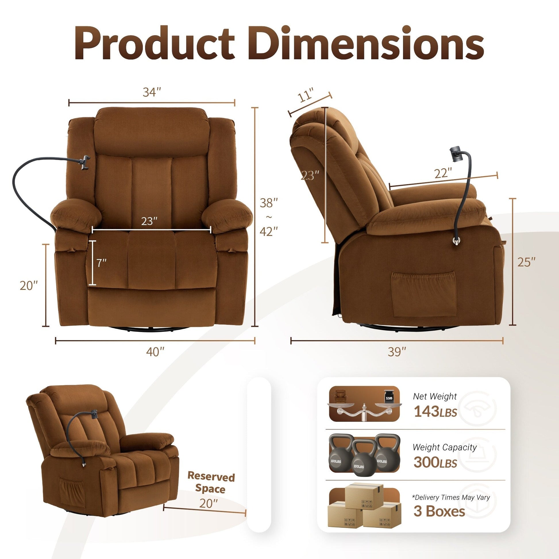 Poltrona reclinabile girevole con massaggio, riscaldamento e supporto...