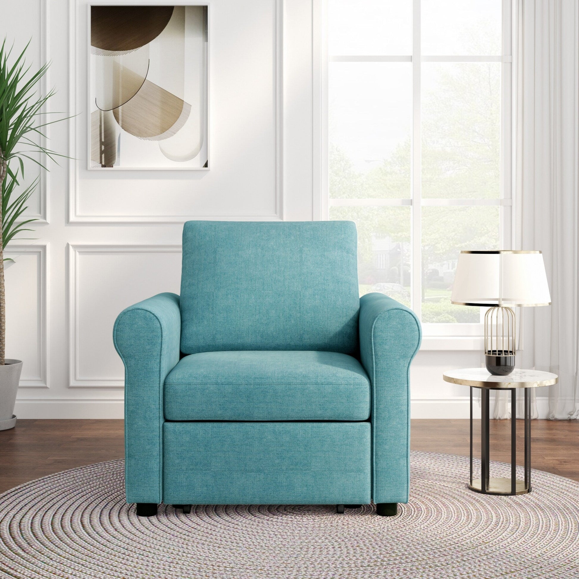 Divano letto singolo convertibile 3 in 1 in lino Teal Modern 34 con schienale regolabile per soggiorno