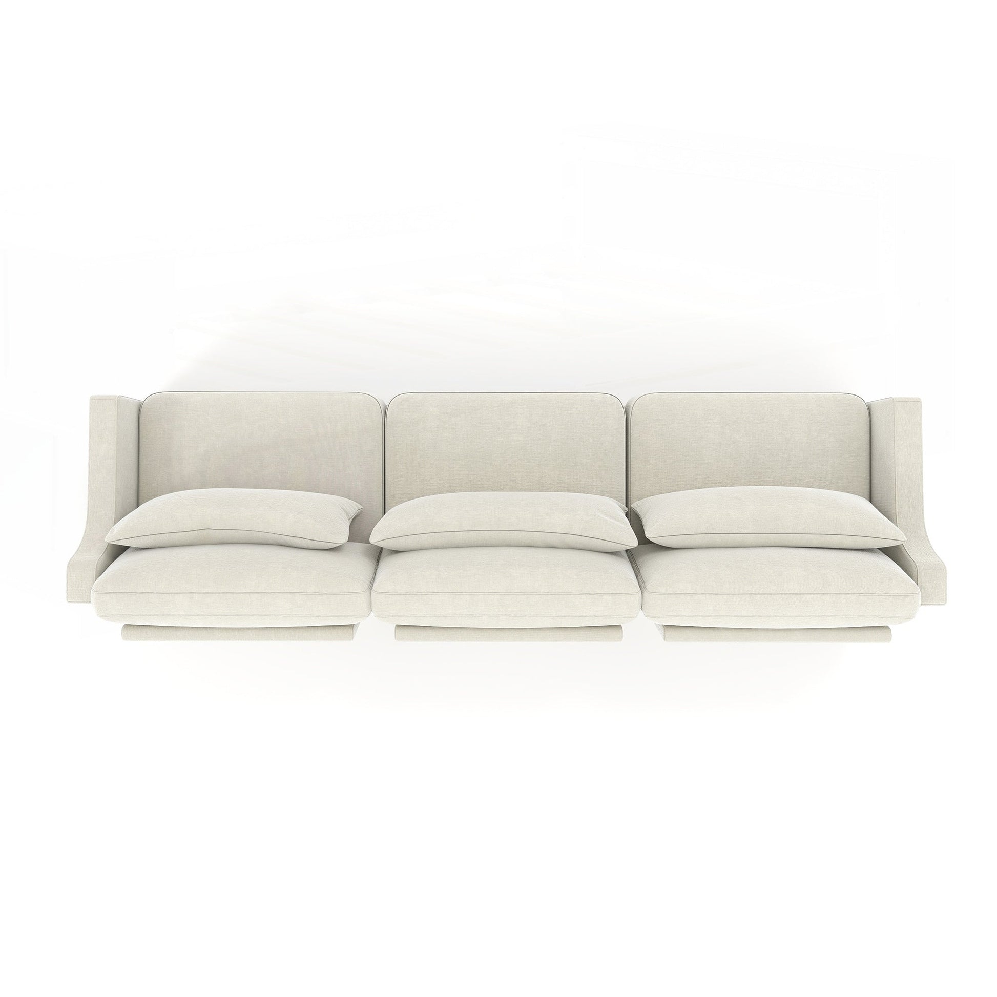 2. Comfort superiore: i cuscini di seduta del divano sono completamente compressi con spugna, offrendo un supporto eccellente. Questo design si adatta alla parte bassa della schiena, offrendo un'esperienza di seduta rilassante, ulteriormente migliorata dai cuscini lombari. Lo schienale ergonomico si adatta perfettamente al corpo e la struttura della base in legno garantisce flessibilità e robustezza per una lunga durata.