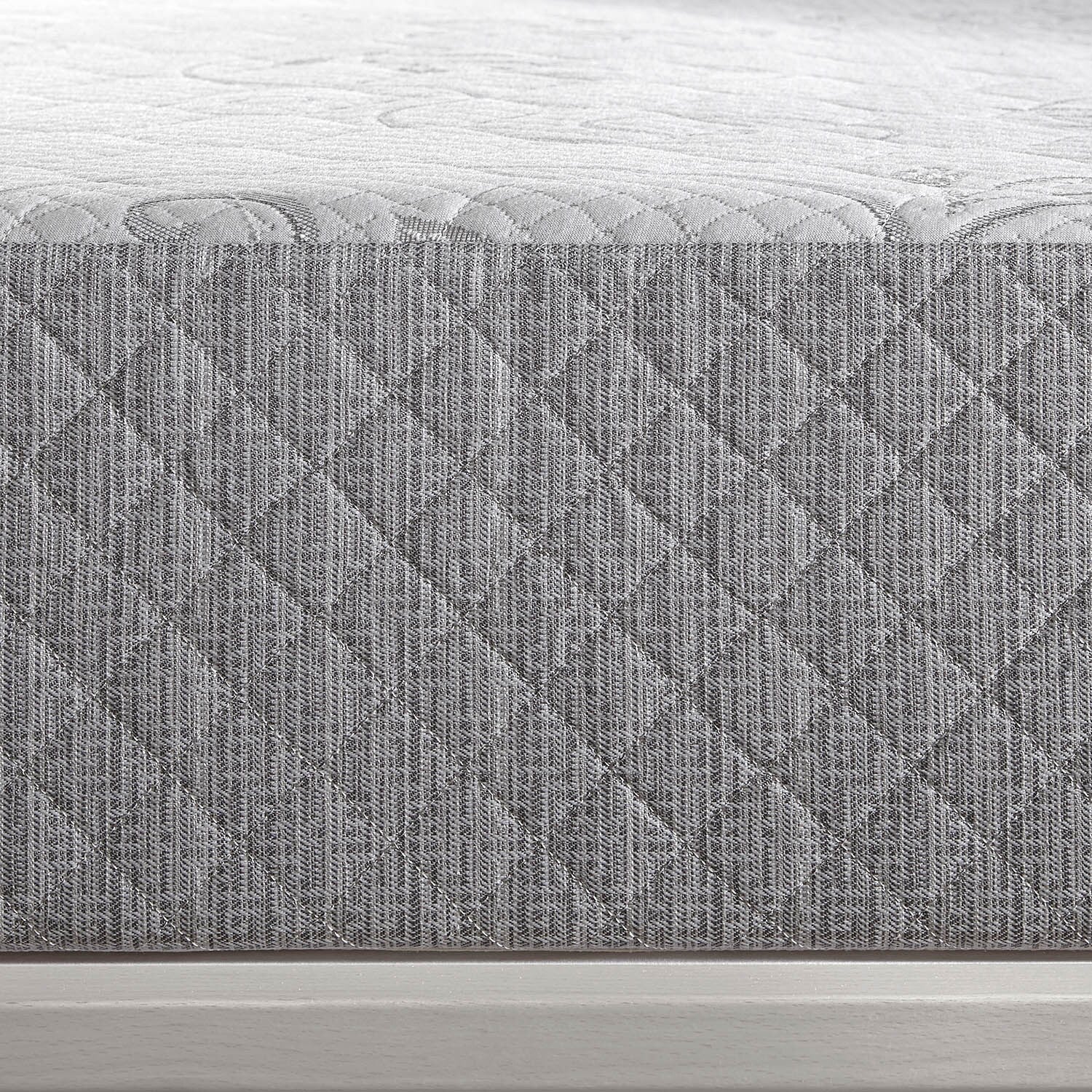 Questo materasso in memory foam gel Touch of Comfort è dotato di tre strati di schiuma studiati per alleviare i punti di pressione e distribuire uniformemente il peso corporeo, per un sonno più profondo. Il materasso singolo è dotato di 5 cm di memory foam gel per mantenerti fresco, lo strato intermedio è in schiuma a canali d'aria e lo strato di base è in schiuma di supporto per aggiungere stabilità al letto. Addormentati più velocemente e dormi più a lungo con questo materasso di media rigidità.
