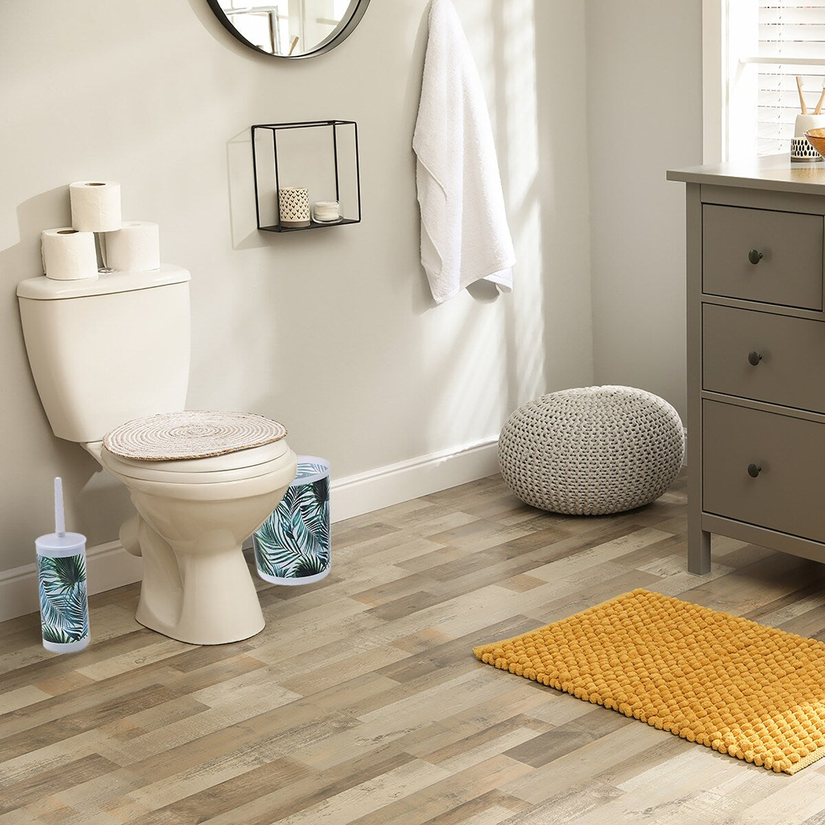 Cestino per rifiuti in plastica con stampa tropicale,...