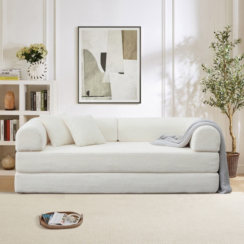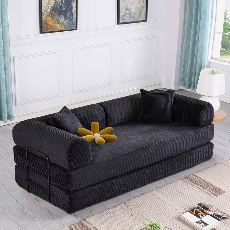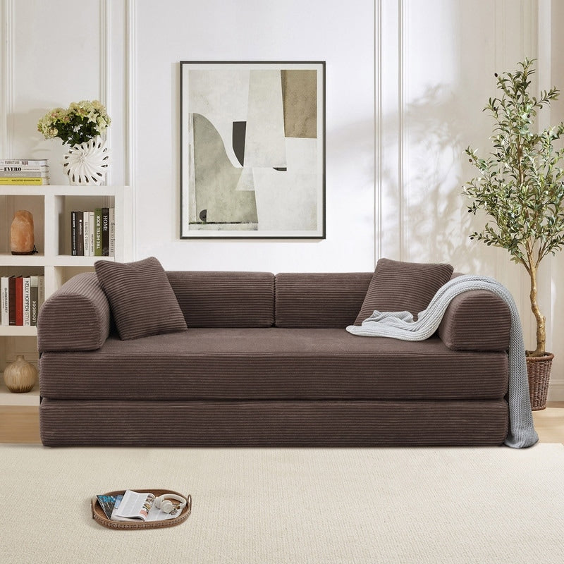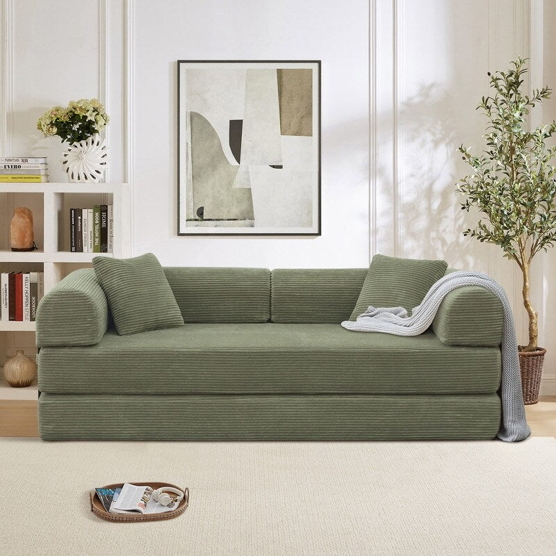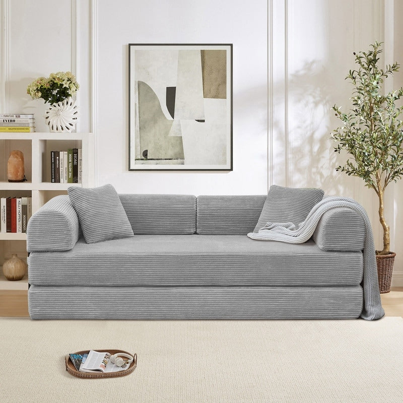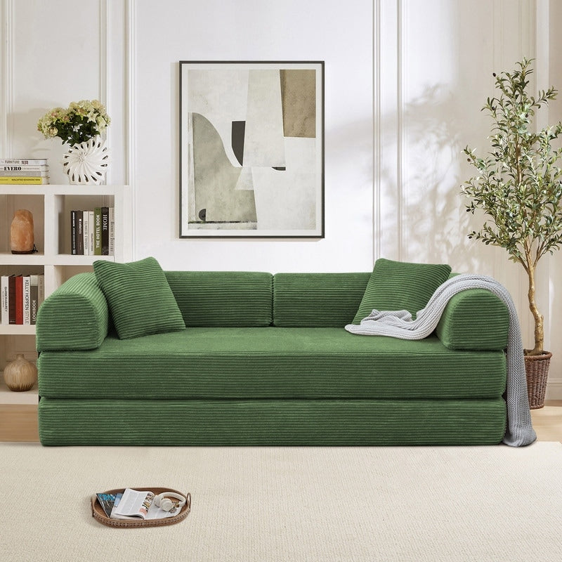 Divano letto trasformabile Twilight in 2 pezzi, divano letto pieghevole in velluto a coste con struttura fissa per spazi abitativi accoglienti