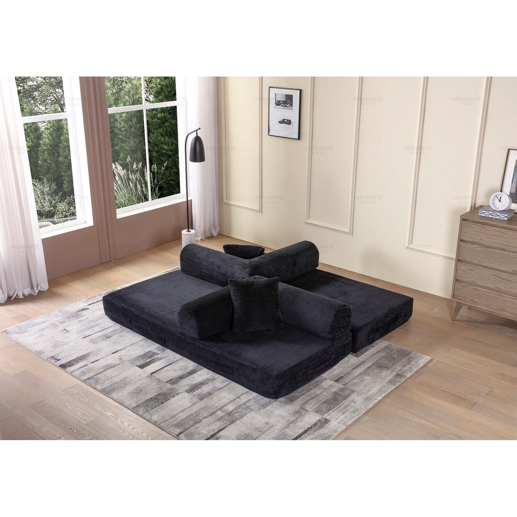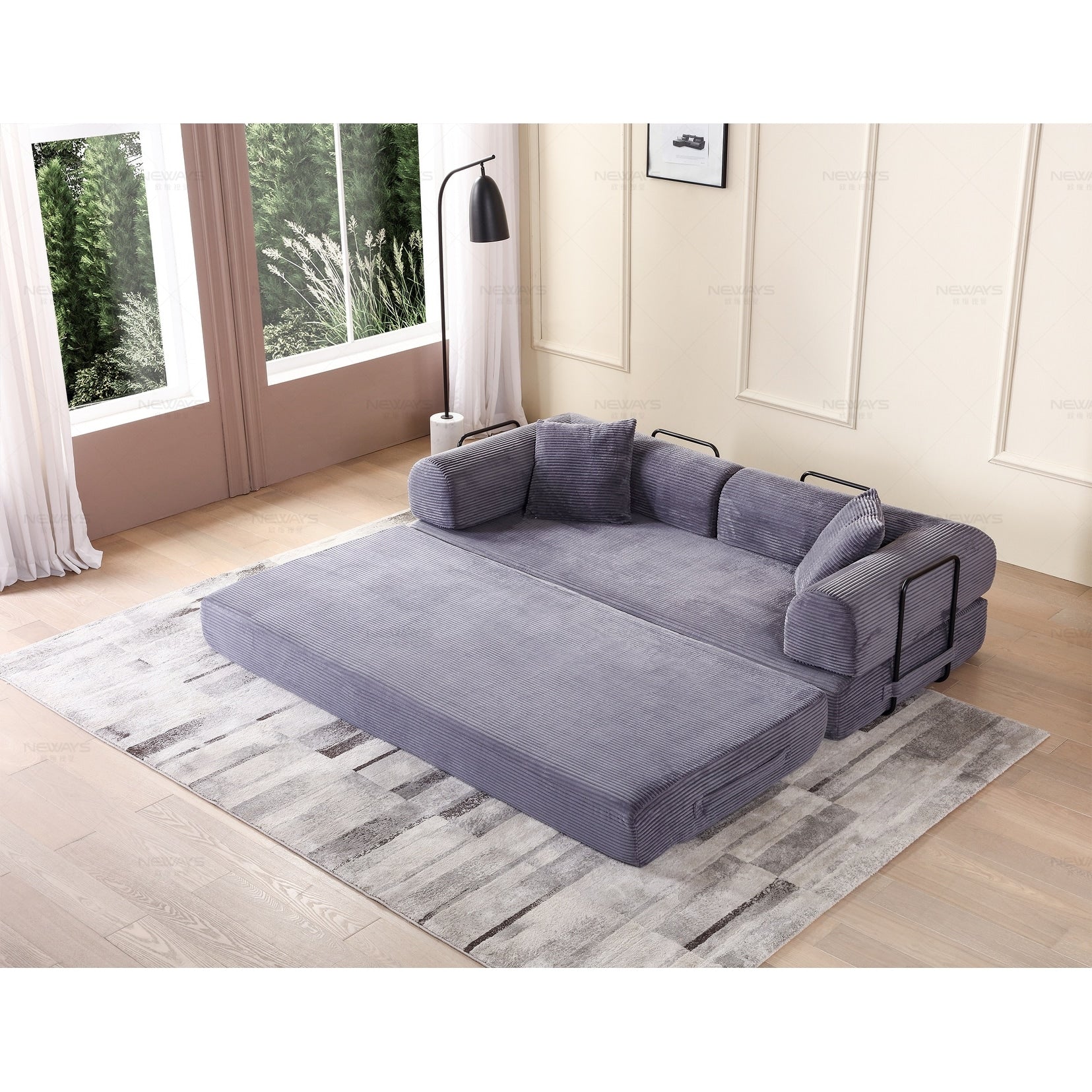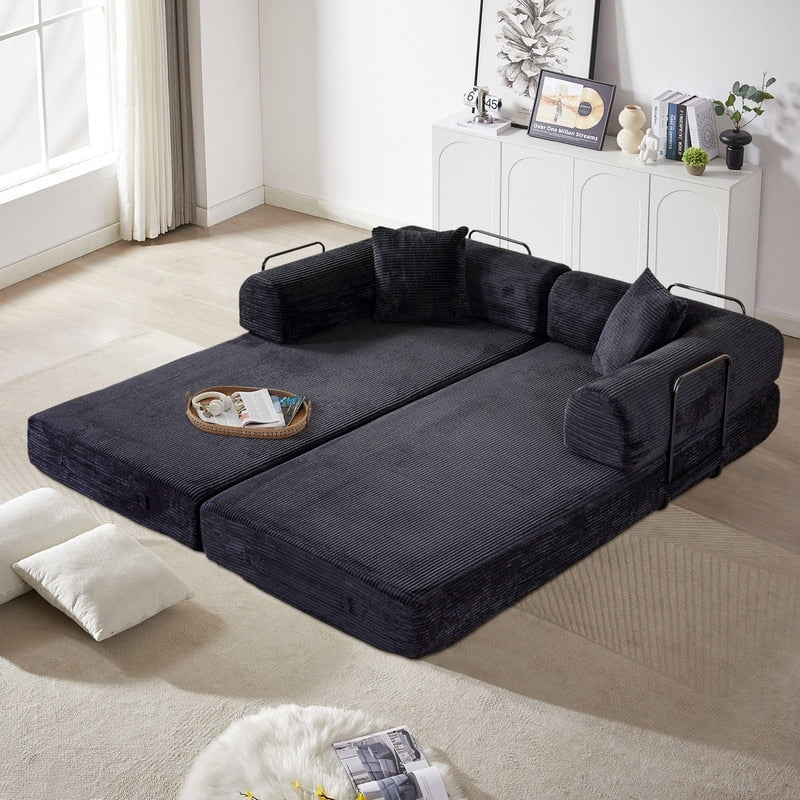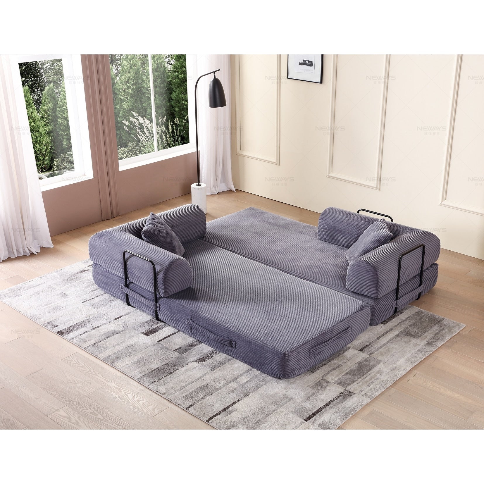 Divano letto trasformabile Twilight in 2 pezzi, divano letto pieghevole in velluto a coste con struttura fissa per spazi abitativi accoglienti