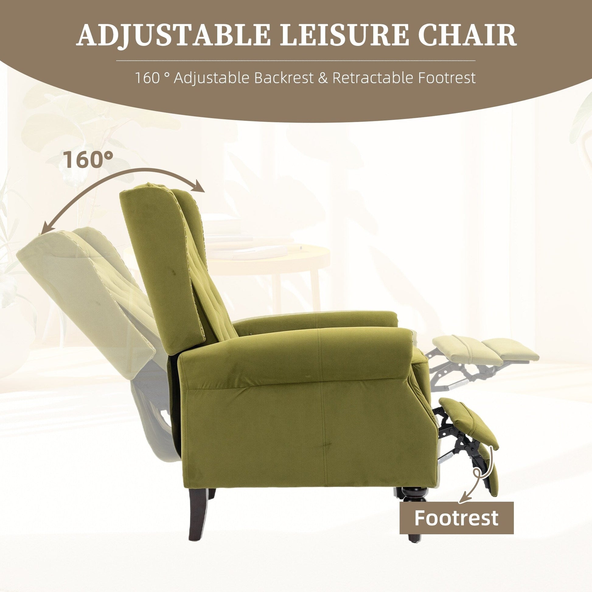 [Design amichevole]: le gambe di questa poltrona reclinabile possono essere allungate e anche l'angolazione dello schienale può essere regolata (90-160 gradi), così puoi sederti o sdraiarti su questa poltrona reclinabile in quasi tutti i modi.