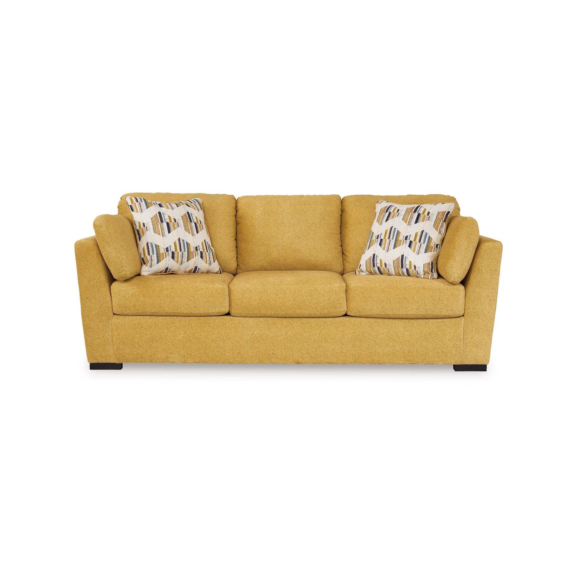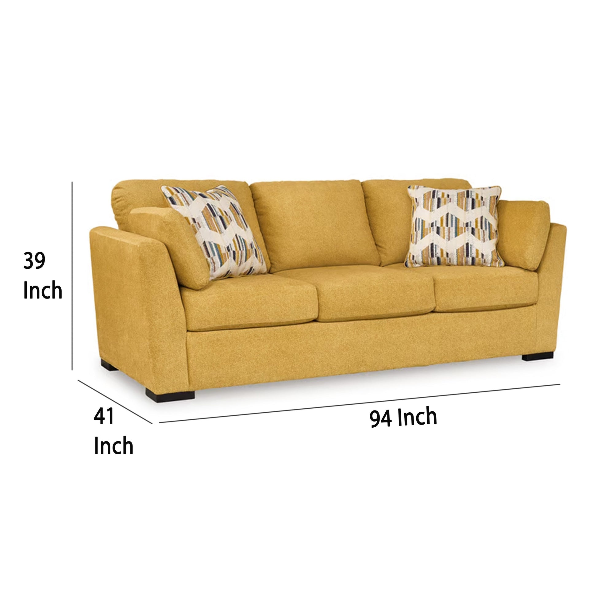 Divano Viena, 2 cuscini decorativi, morbido velluto giallo...