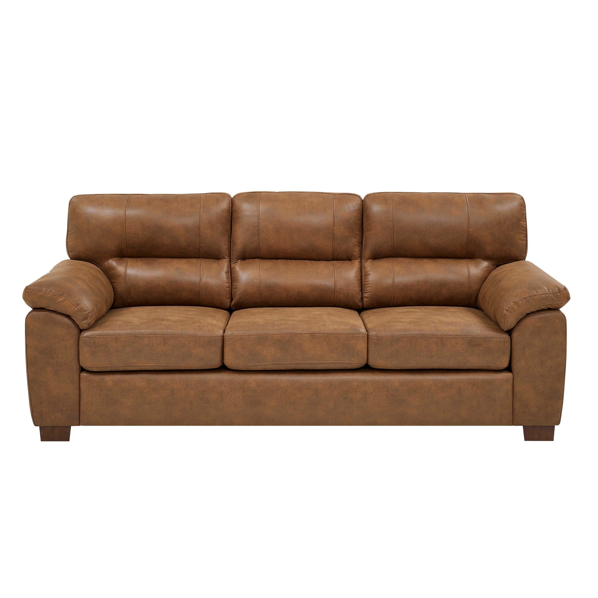 • Immergiti nel lusso con questo divano in pelle marrone di ispirazione vintage.