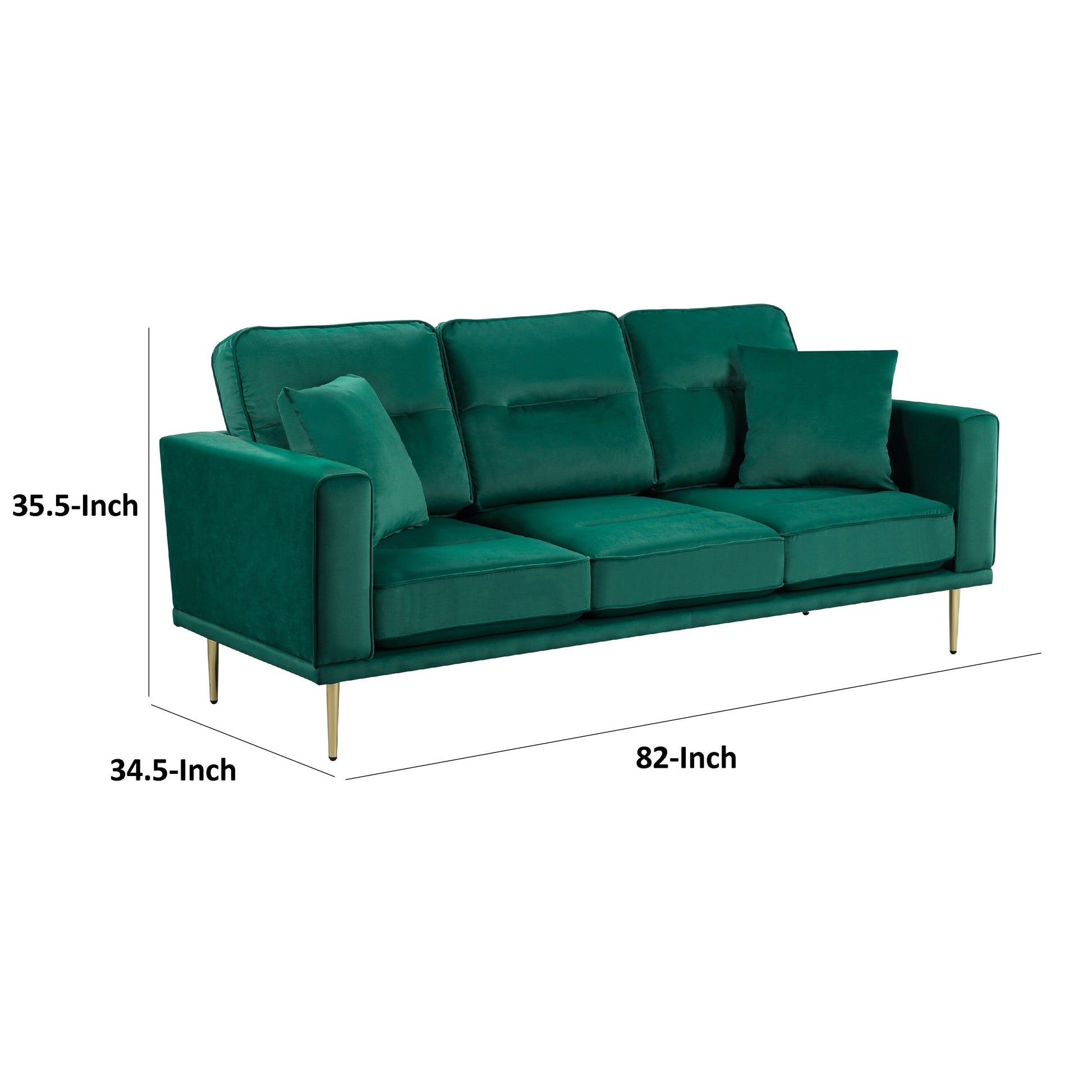 Divano Voxo, seduta imbottita in velluto verde, due cuscini decorativi, 82 pollici