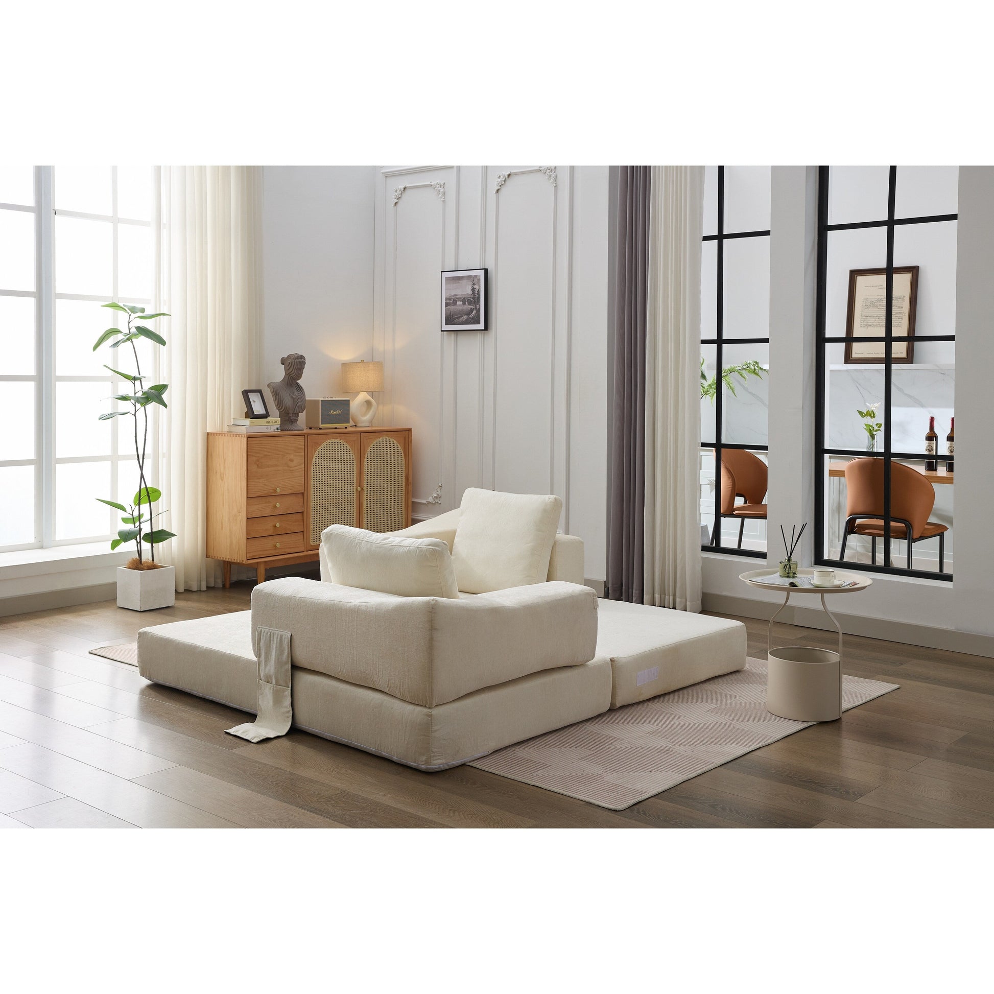 Divano letto trasformabile in ciniglia, moderno e minimalista, bianco, 70,87, con schienale rimovibile per soggiorno