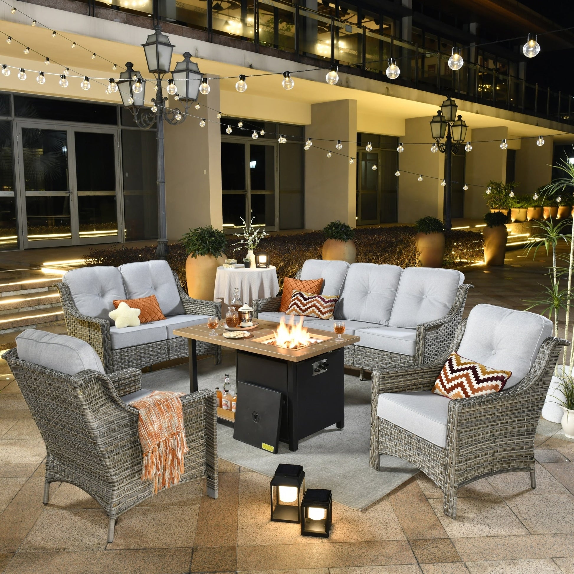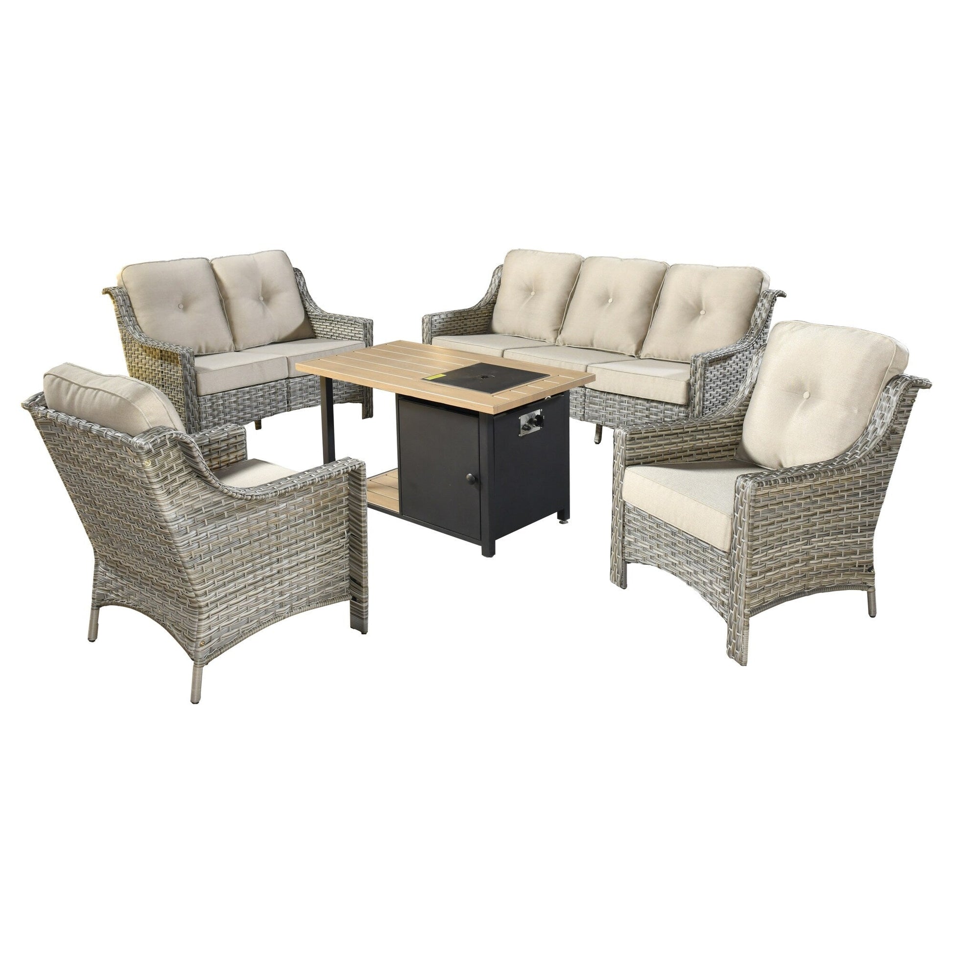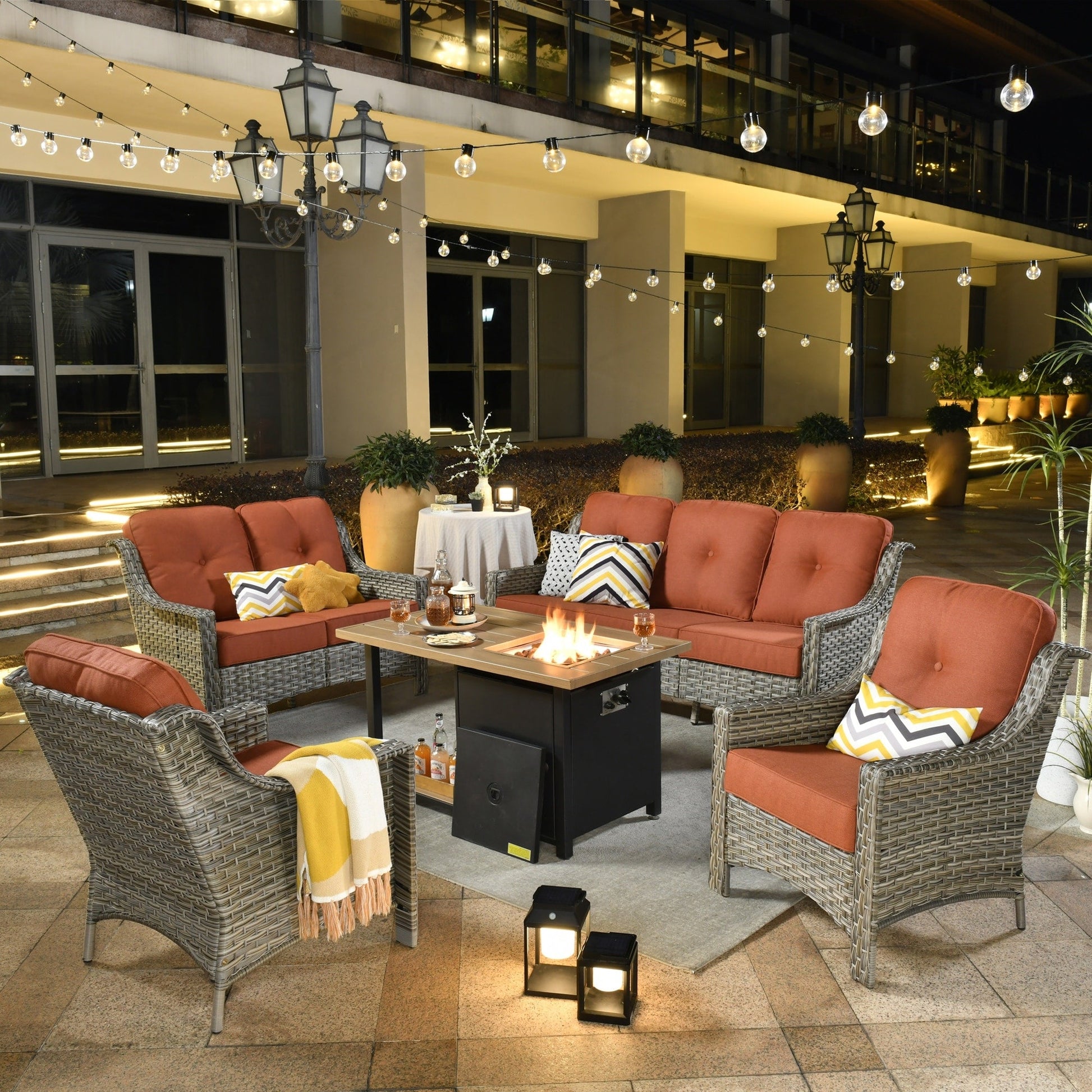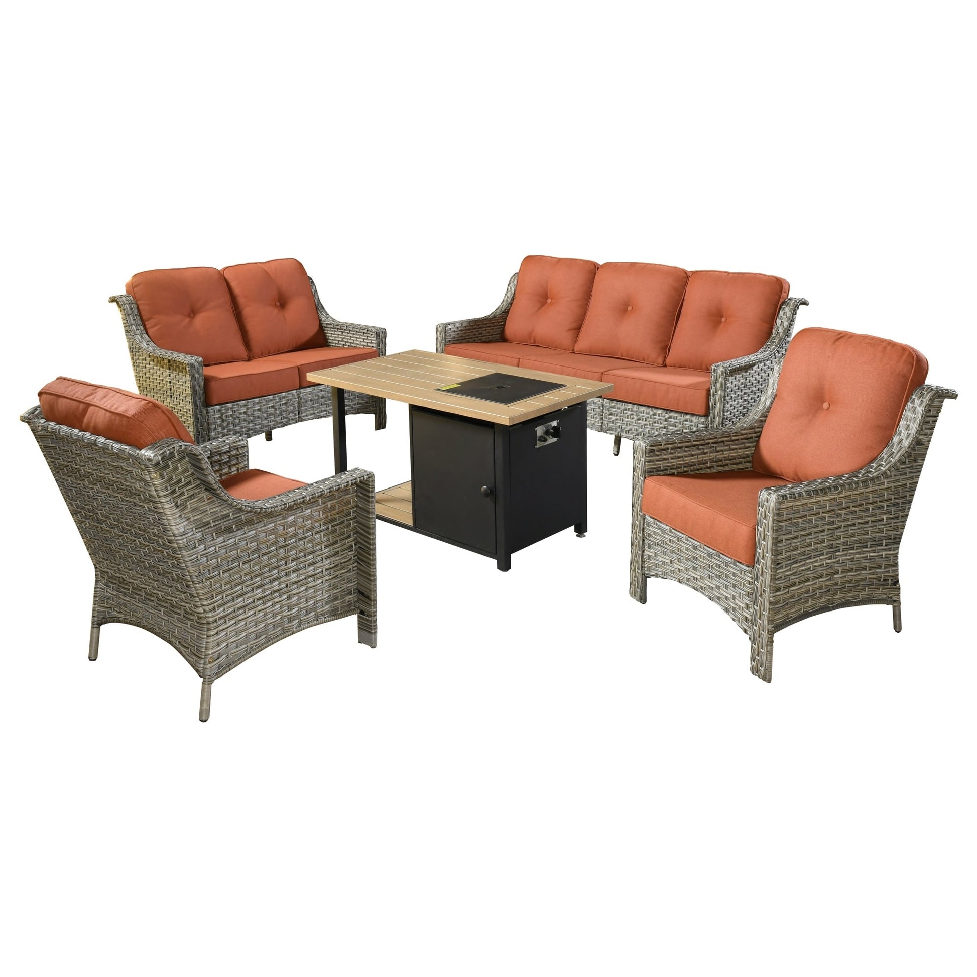 XIZZI Set di 5 divani da esterno in vimini con schienale alto e braciere per mobili da giardino