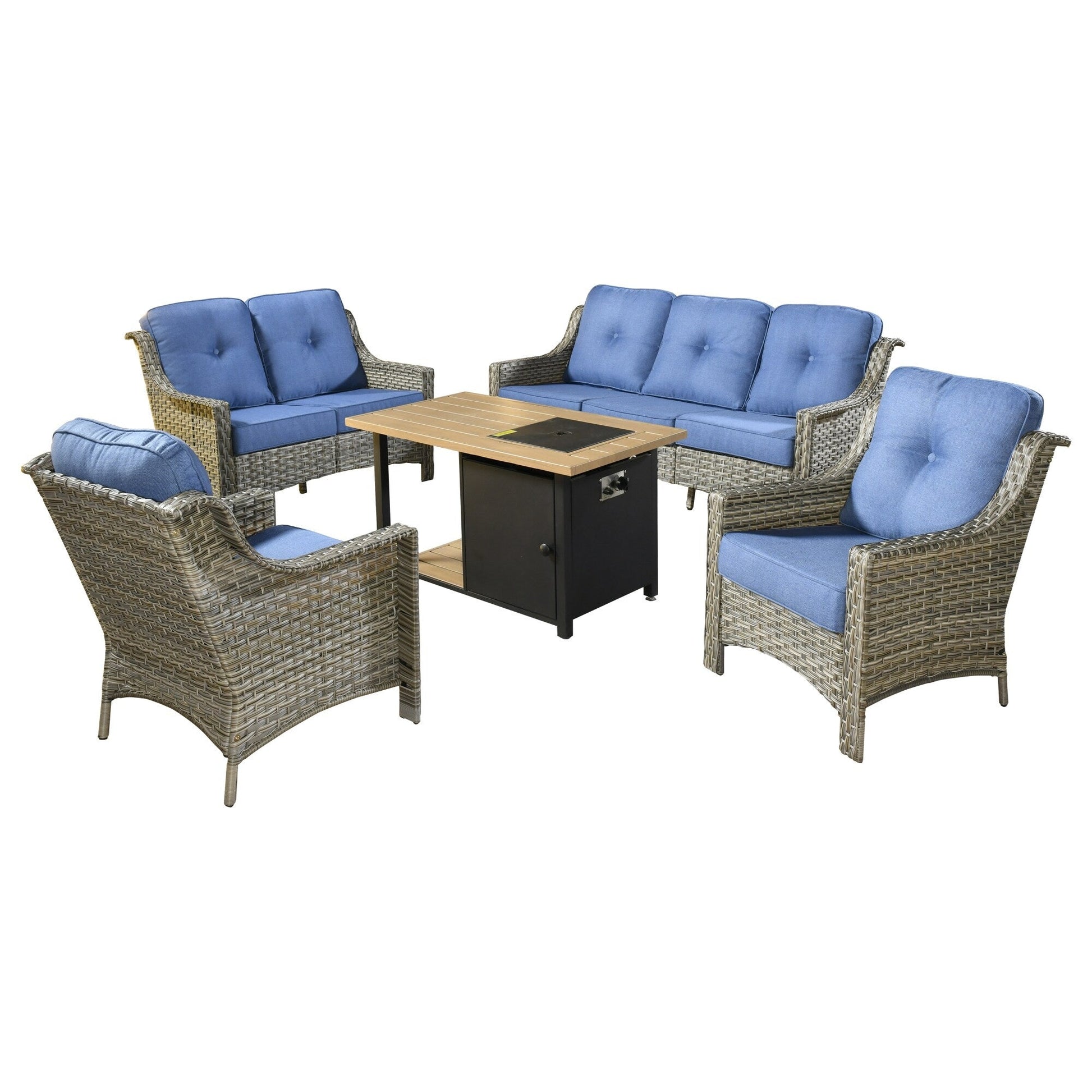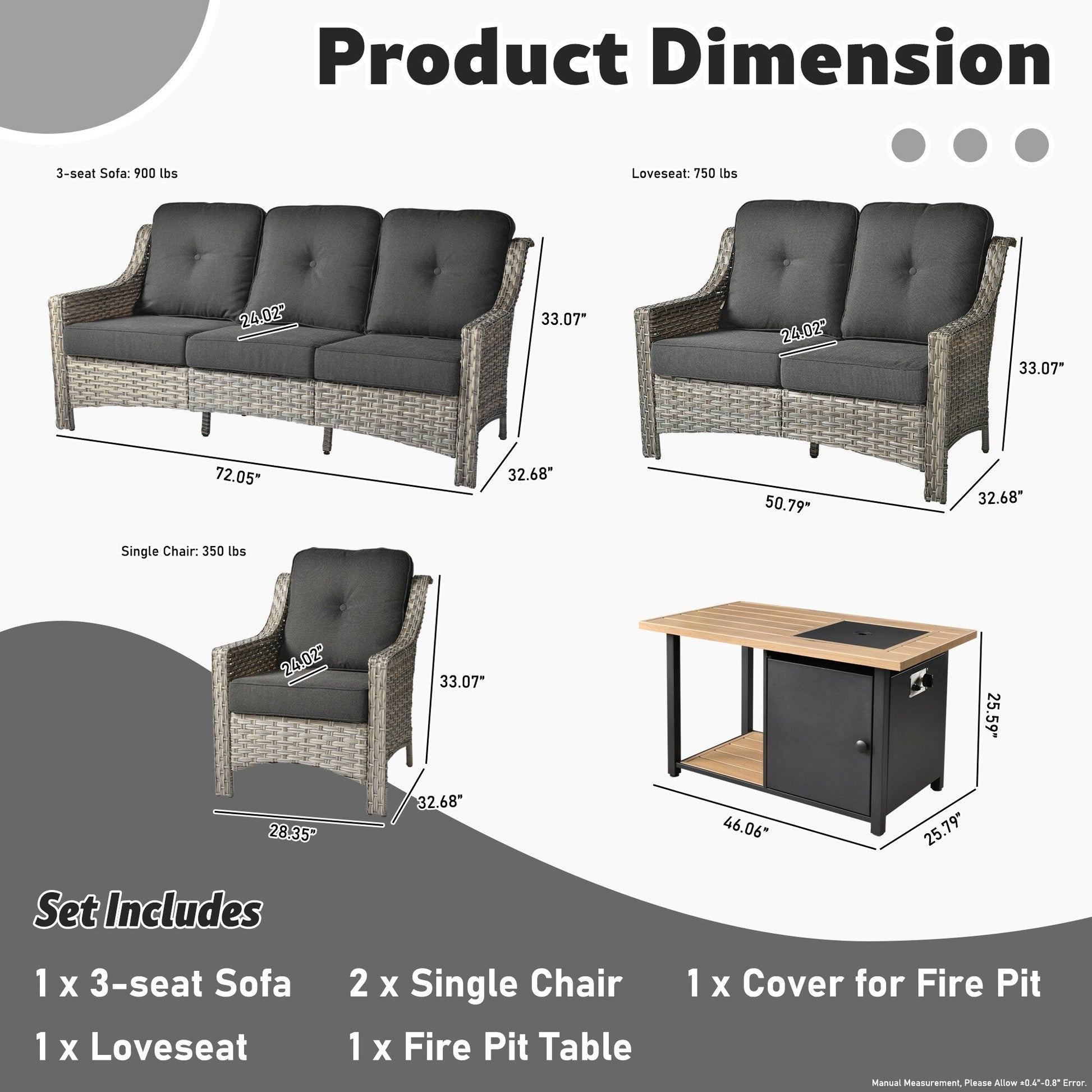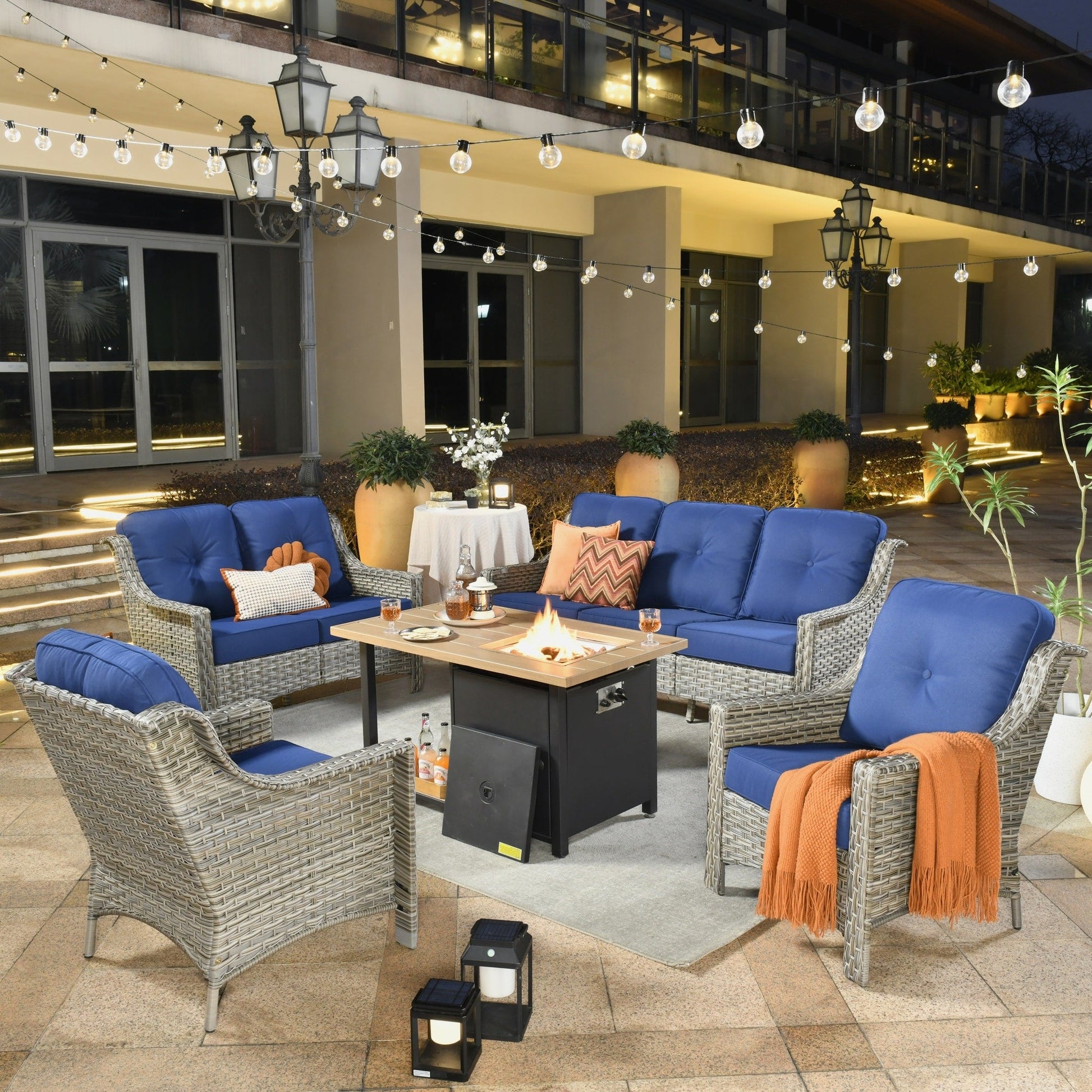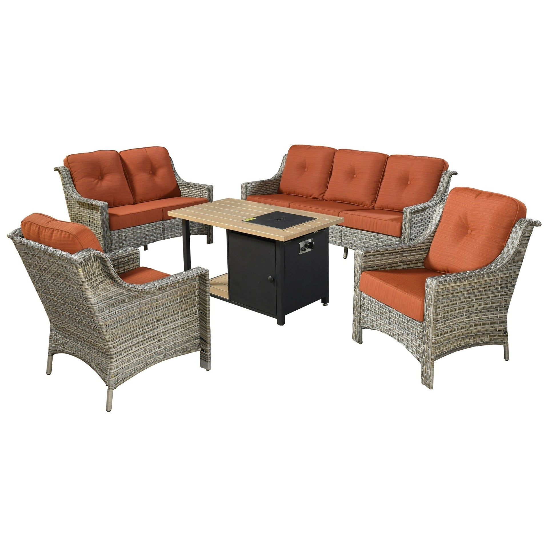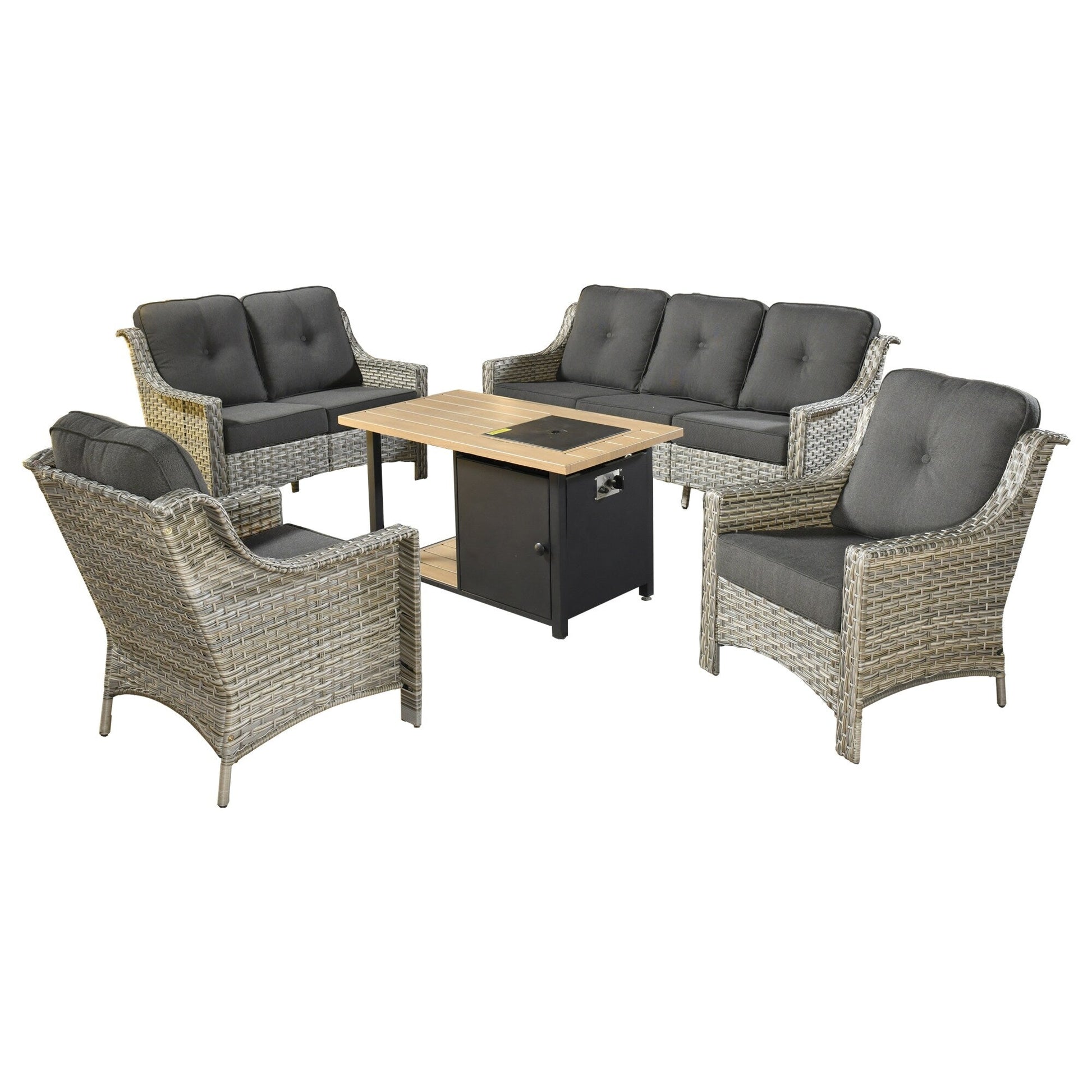 XIZZI Set di 5 divani da esterno in vimini con schienale alto e braciere per mobili da giardino
