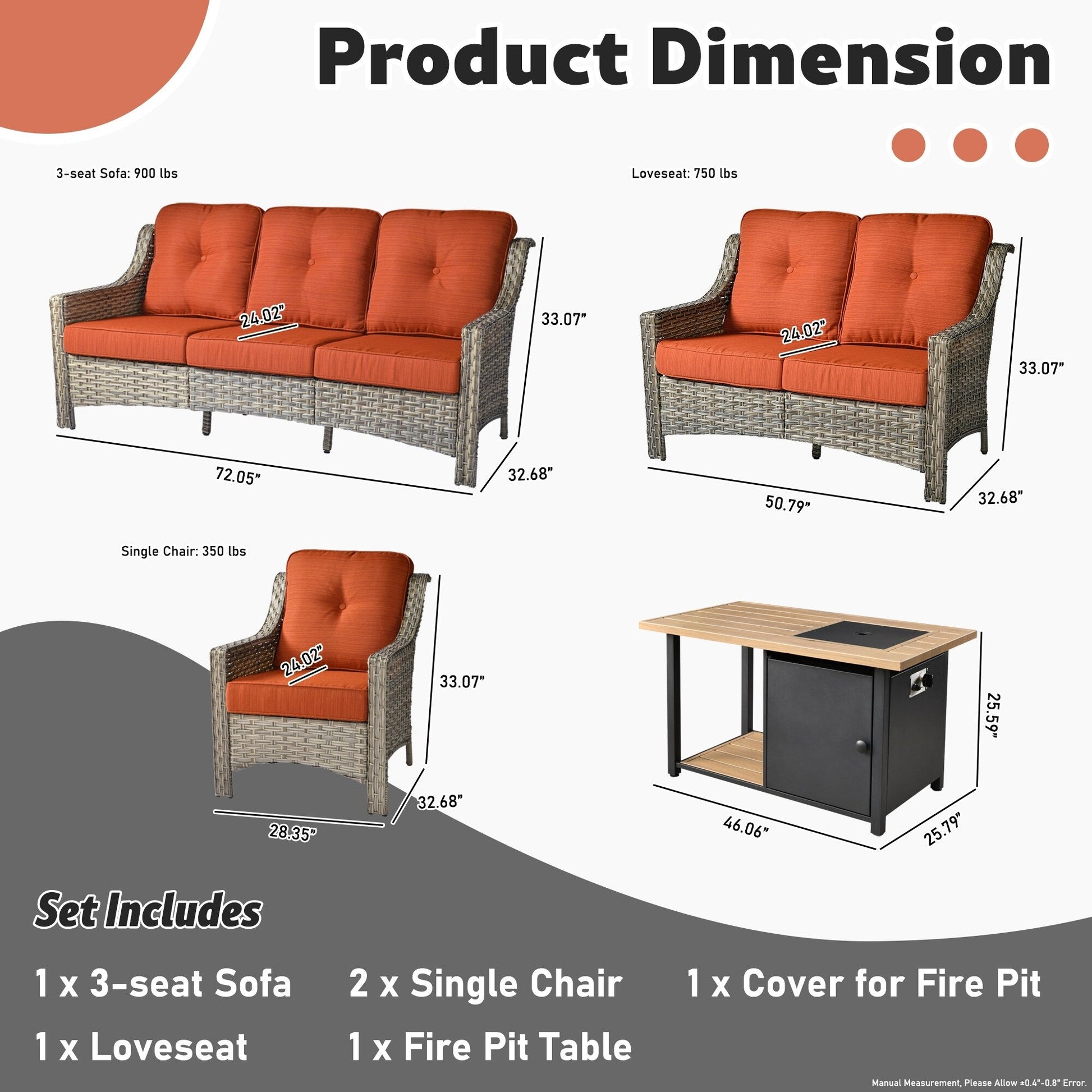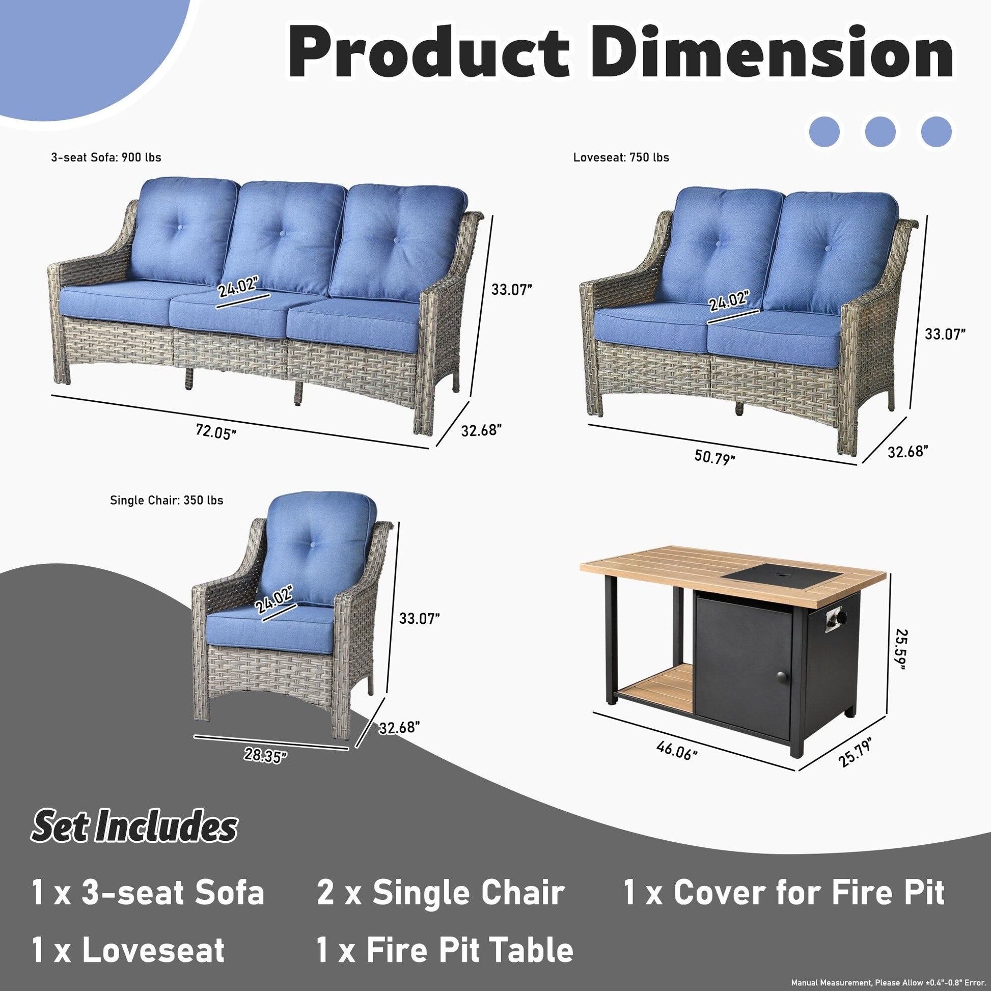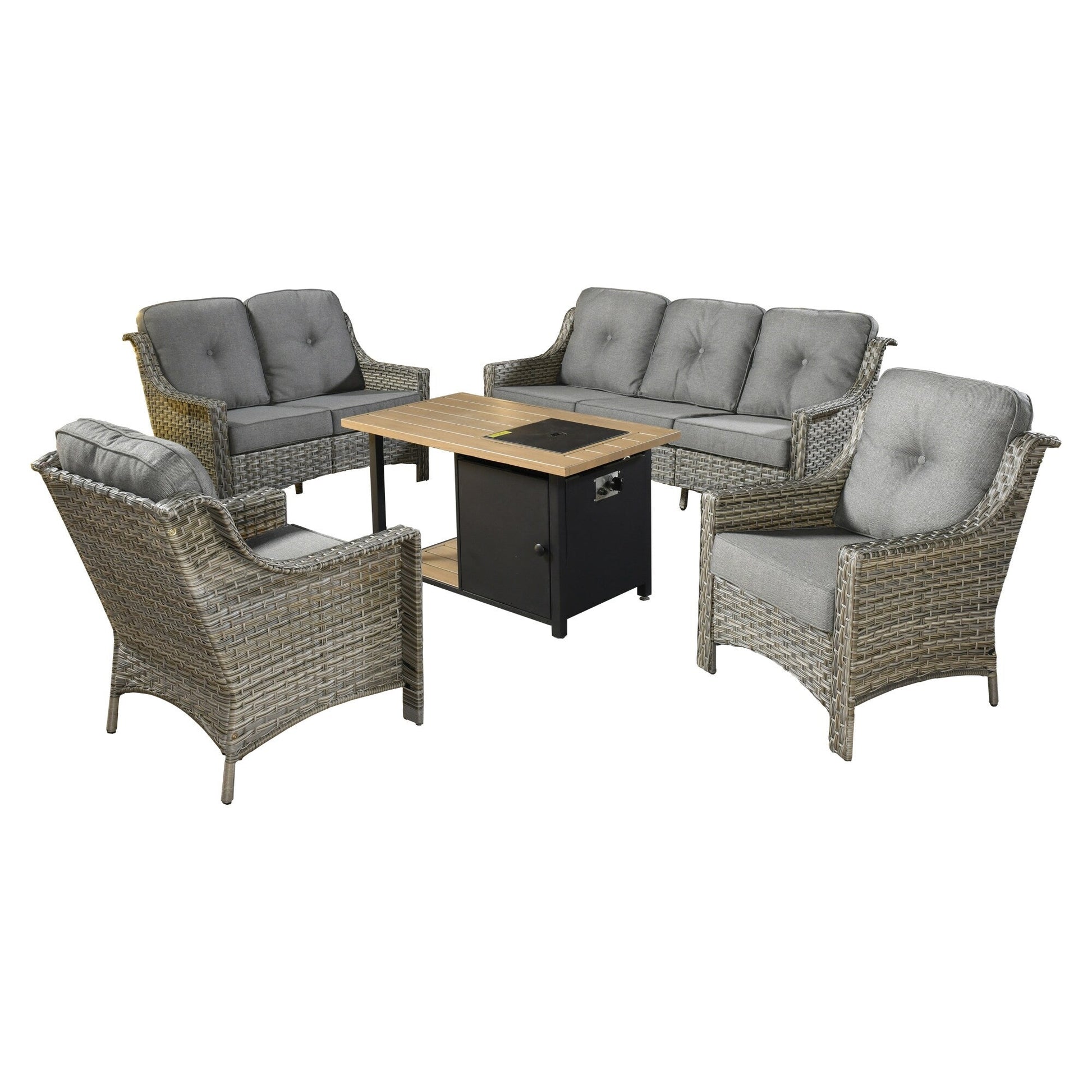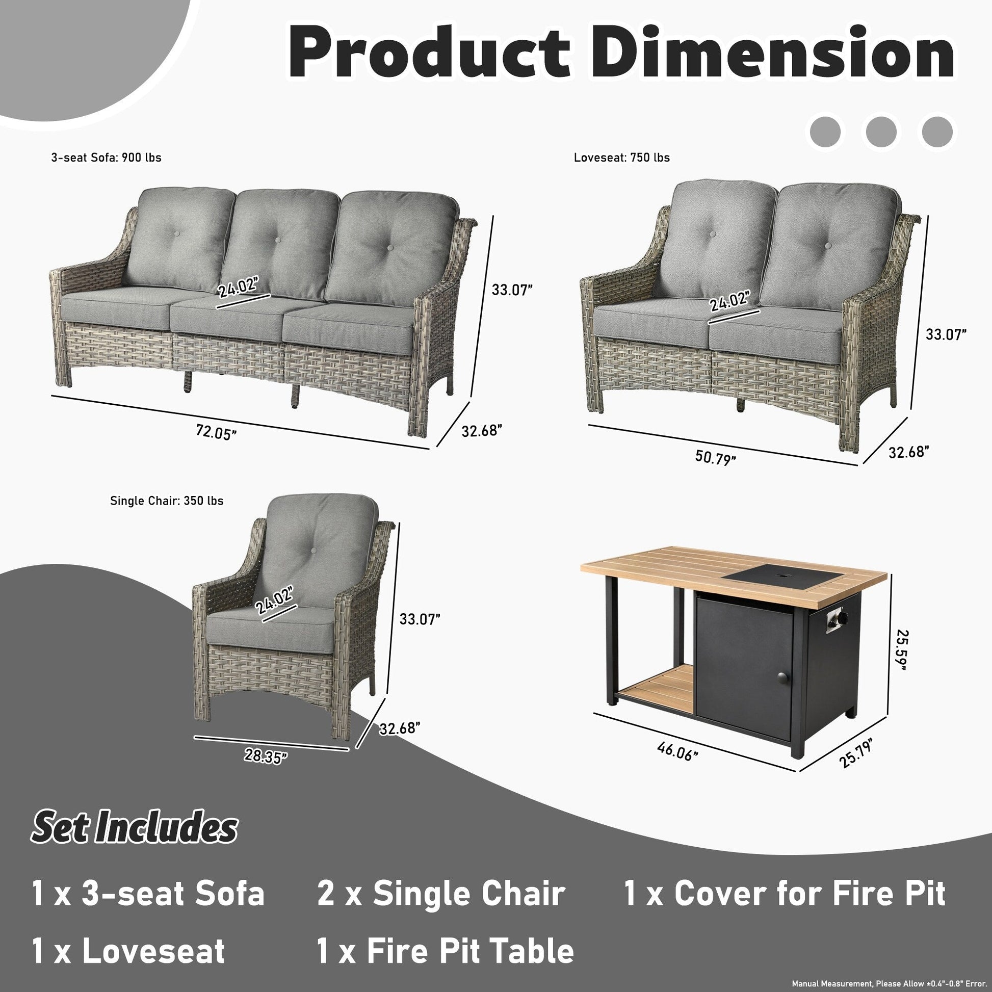 XIZZI Set di 5 divani da esterno in vimini con schienale alto e braciere per mobili da giardino