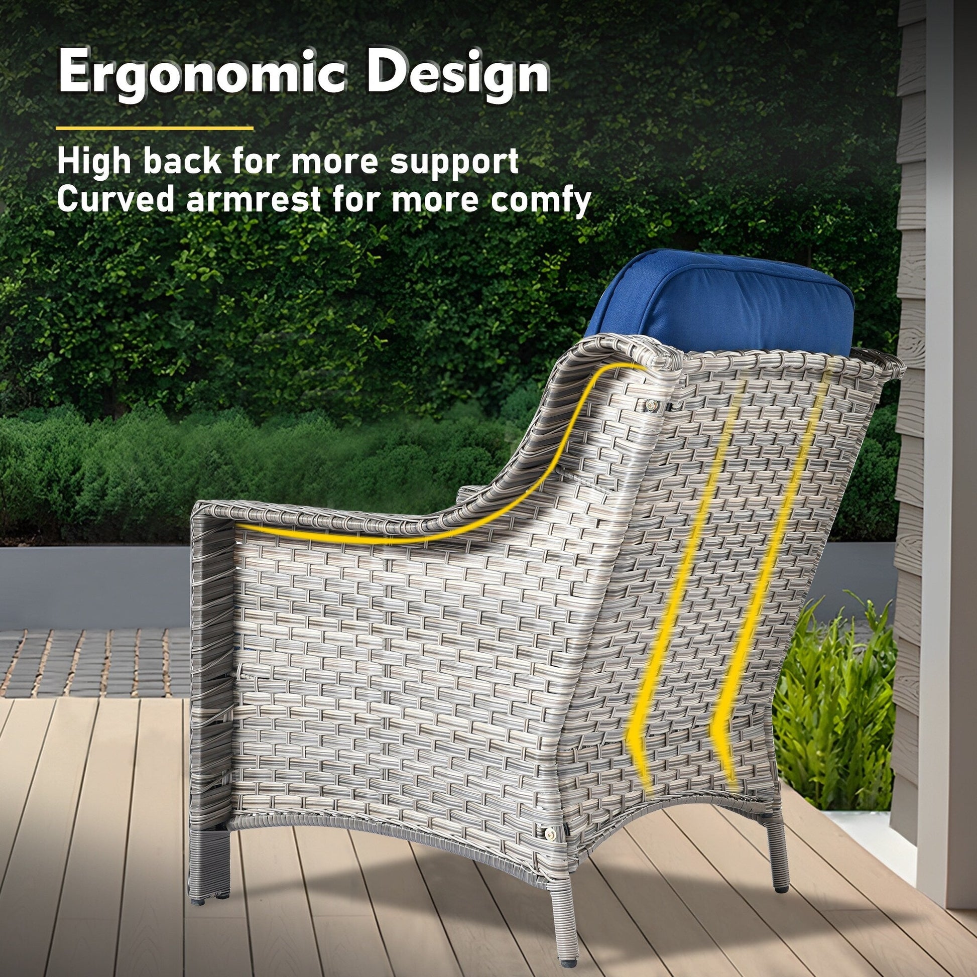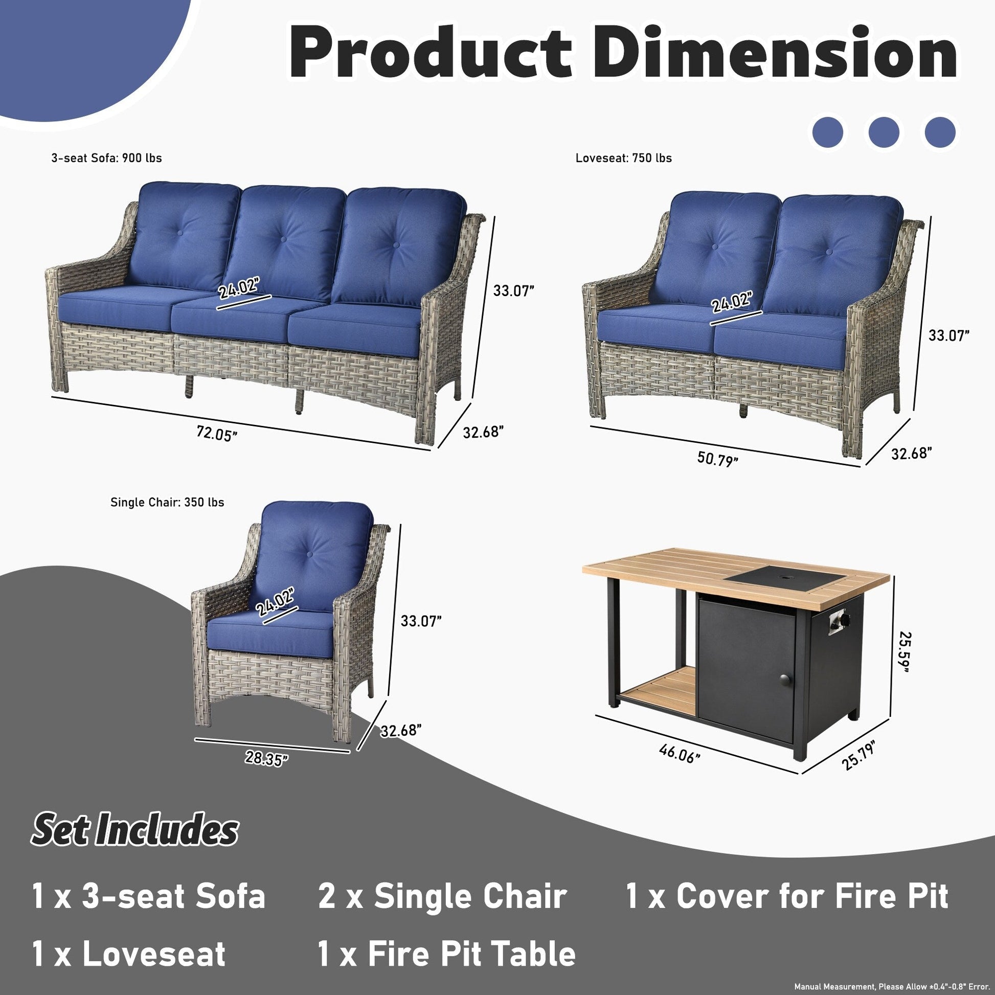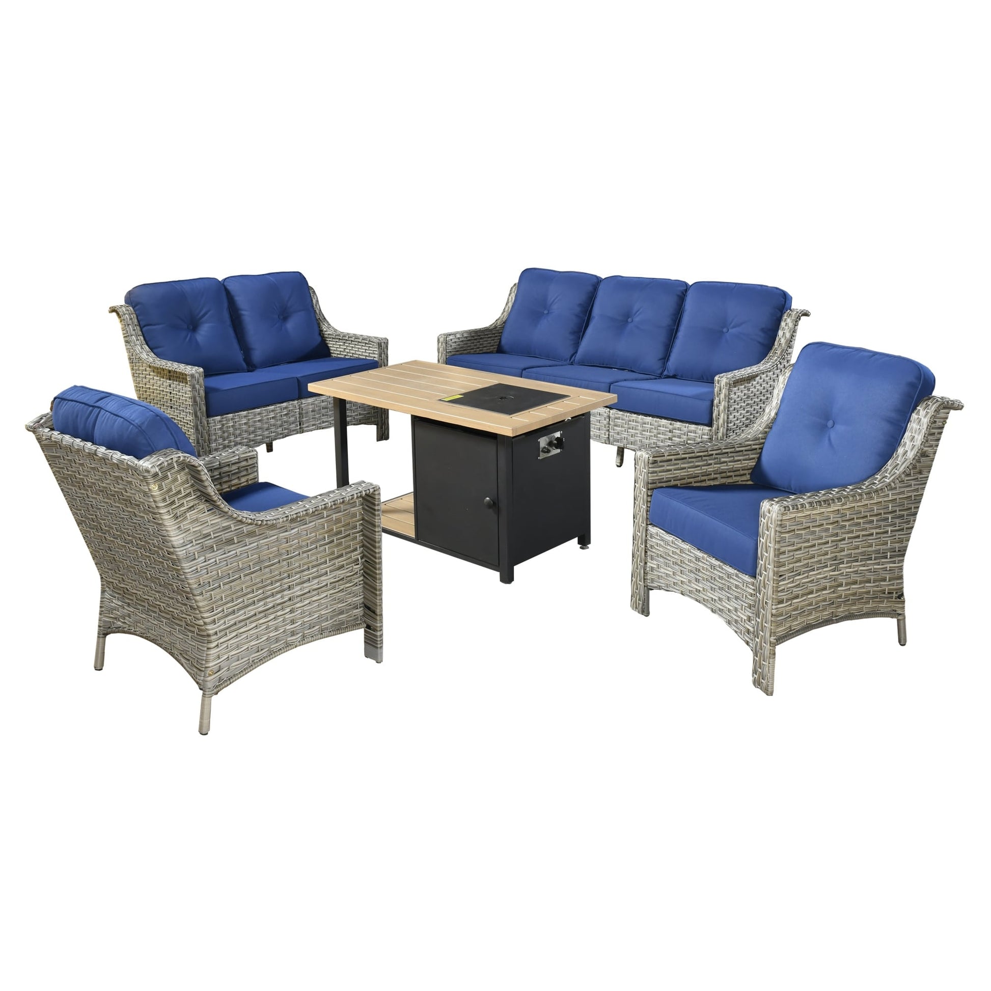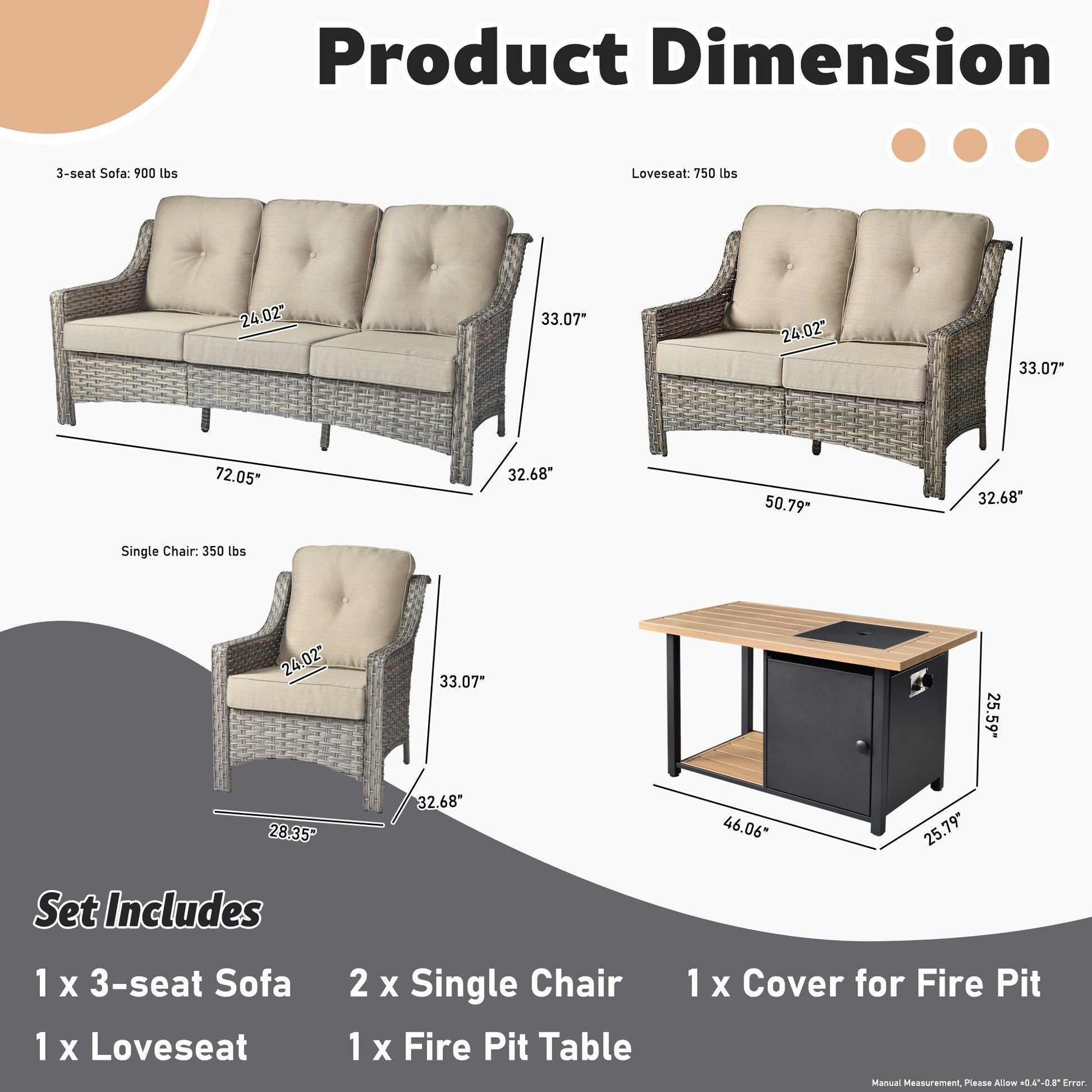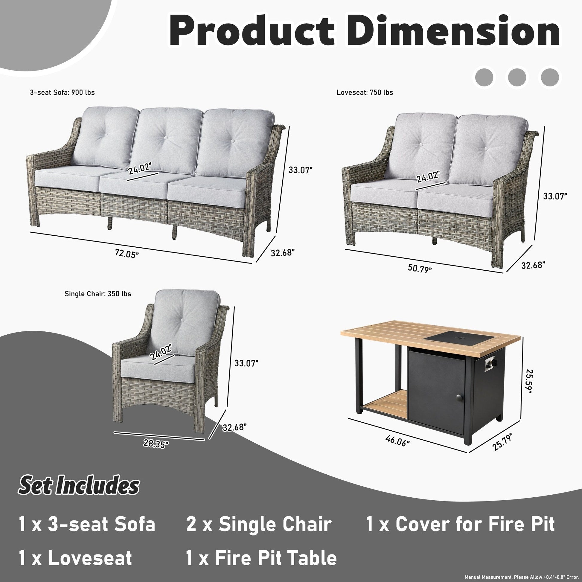 XIZZI Set di 5 divani da esterno in vimini con schienale alto e braciere per mobili da giardino